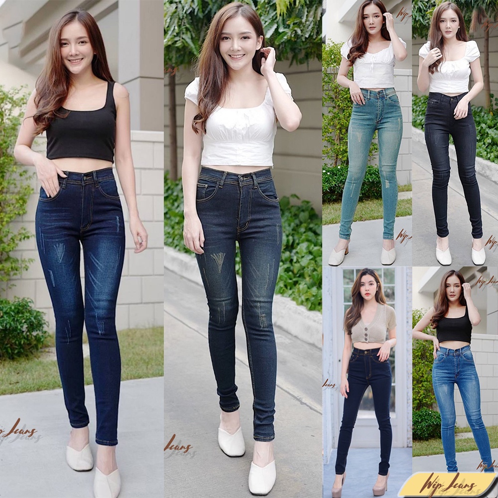 💄 กางเกงยีนส์ผู้หญิงขาเดฟ ผ้ายืด เอวสูง 💄 สกินนี่ ทรง skinny