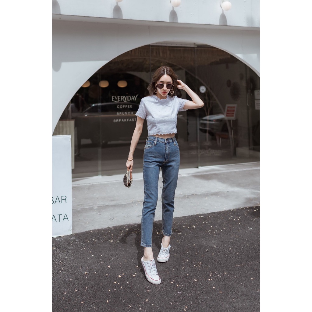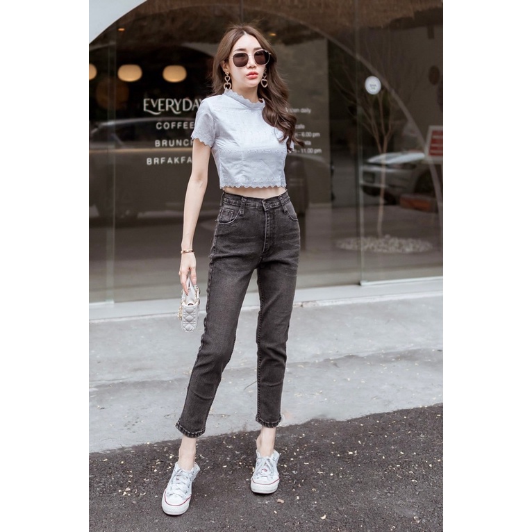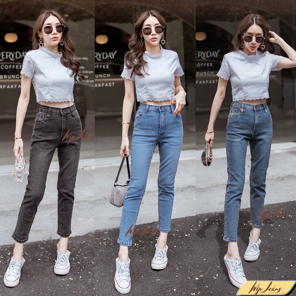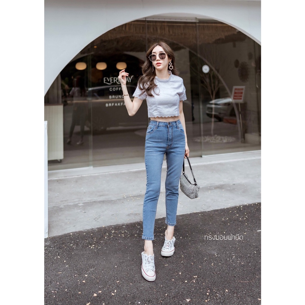📌 กางเกงยีนส์ผู้หญิงทรงบอยเอวสูงผ้ายืดทรงยอดฮิต 😎 แฟชั่นผญ เกาหลี ขายาว boyfriend slim fit กางเกงยีนส์ผู้หญิง