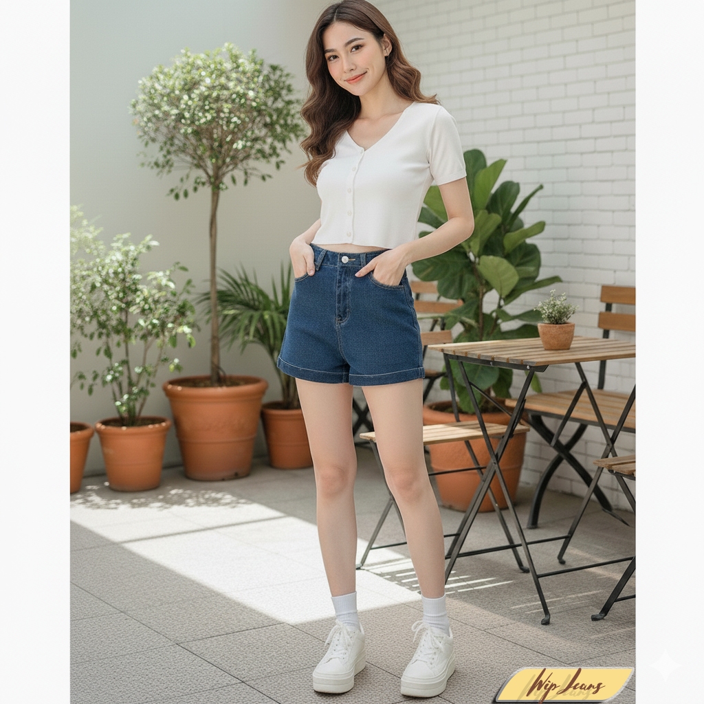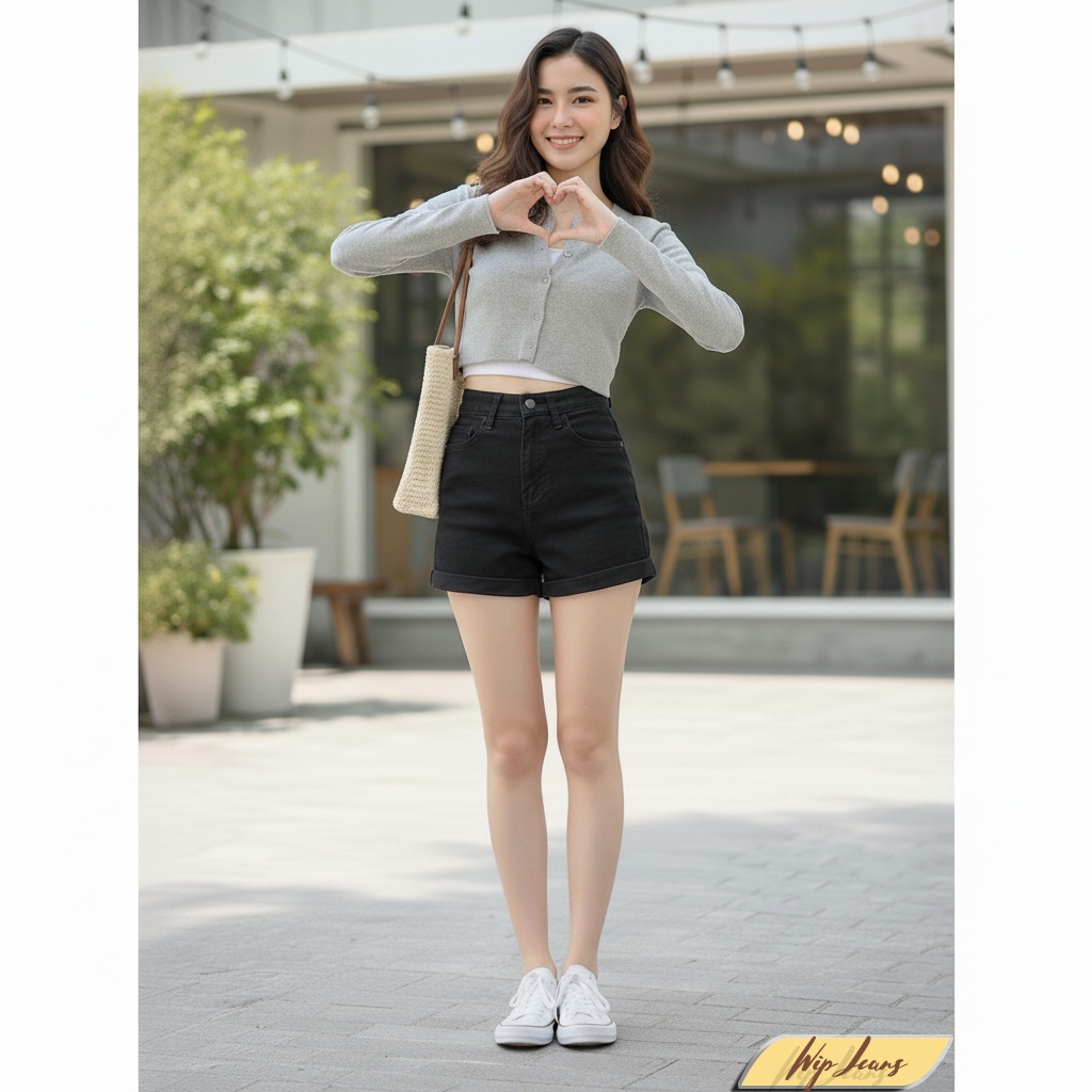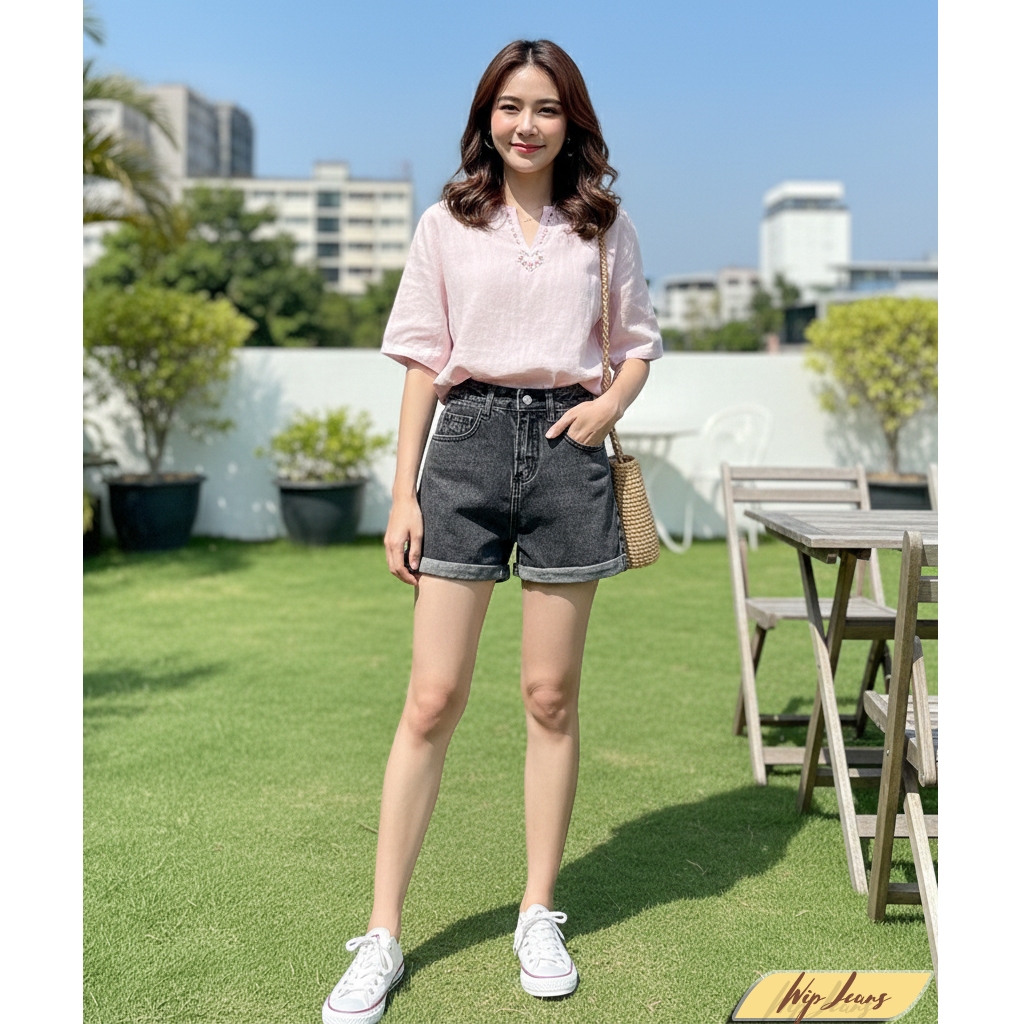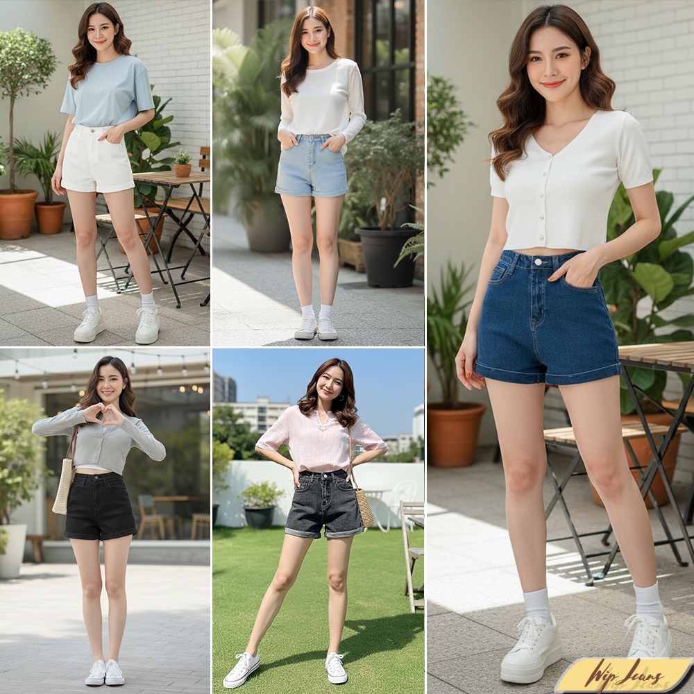 💘 กางเกงยีนส์ขาสั้นเอวสูงพับขาผู้หญิงทรงสวยขาเรียวใส่สบายหลายโอกาสใส่ได้ทุกวัน Everyday Look💘