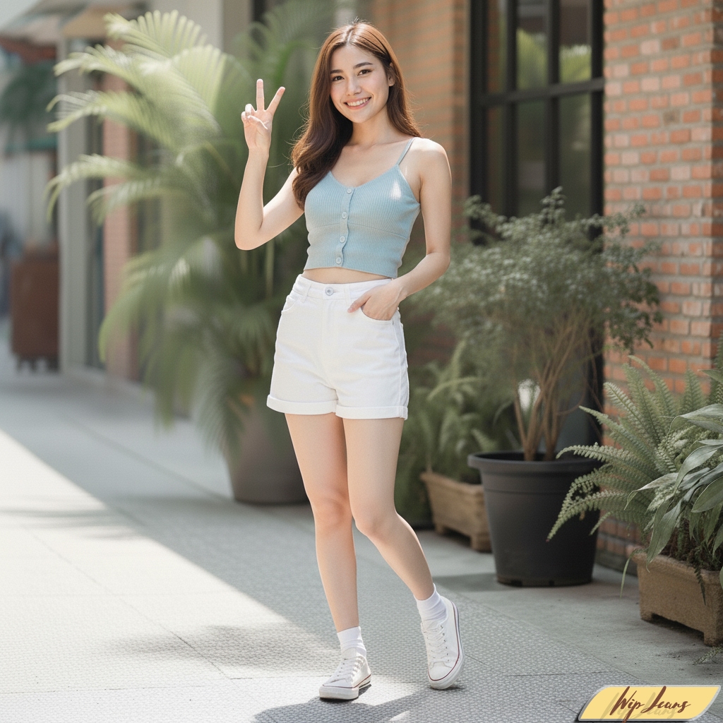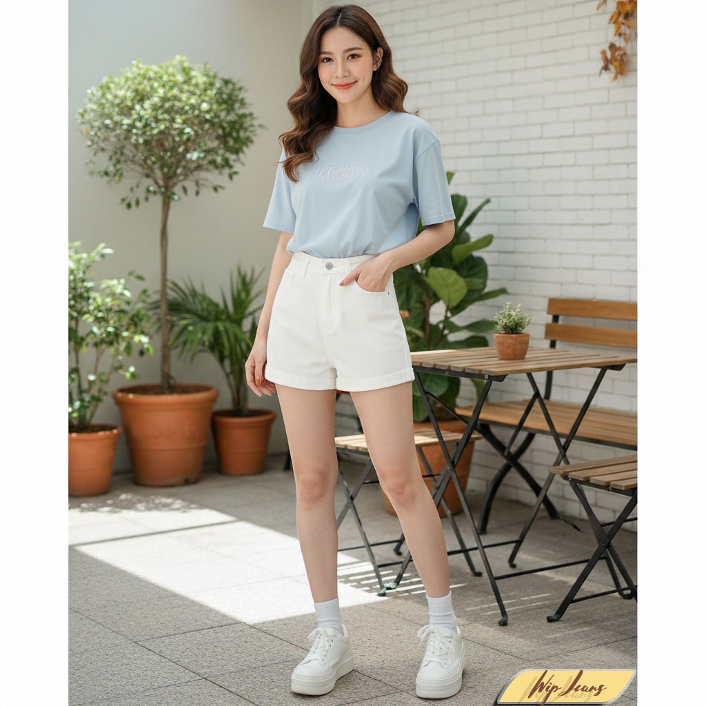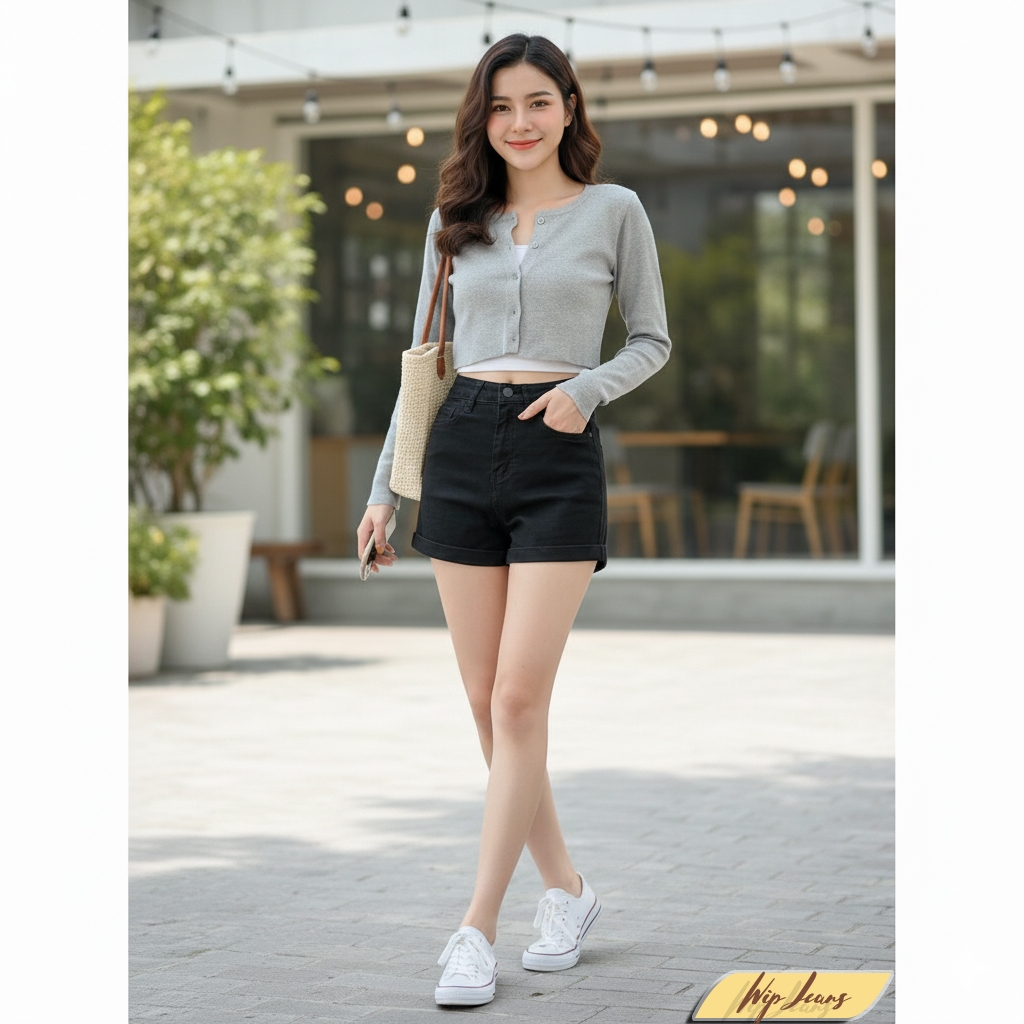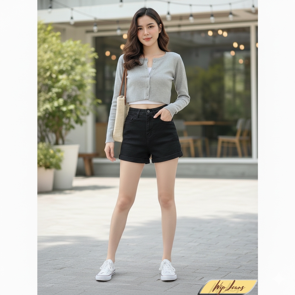 💘 กางเกงยีนส์ขาสั้นเอวสูงพับขาผู้หญิงทรงสวยขาเรียวใส่สบายหลายโอกาสใส่ได้ทุกวัน Everyday Look💘