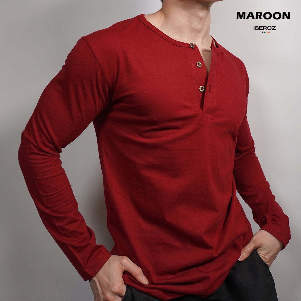 IBEROZ เสื้อยืด แขนยาว คอกระดุม สีพื้น มีsize M,L,XL