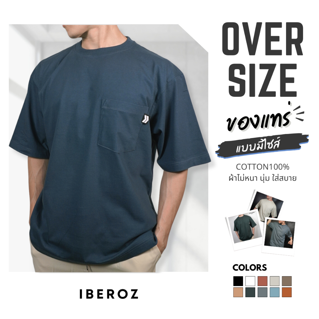 IBEROZ เสื้อยืด โอเวอร์ไซส์ มีกระเป๋า สีพื้น สไตล์มินิมอล รุ่น S-OVERPOCKET