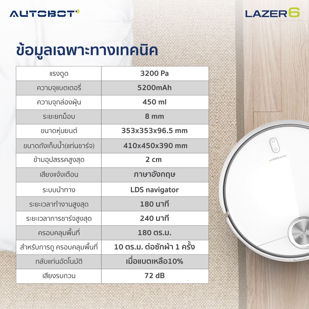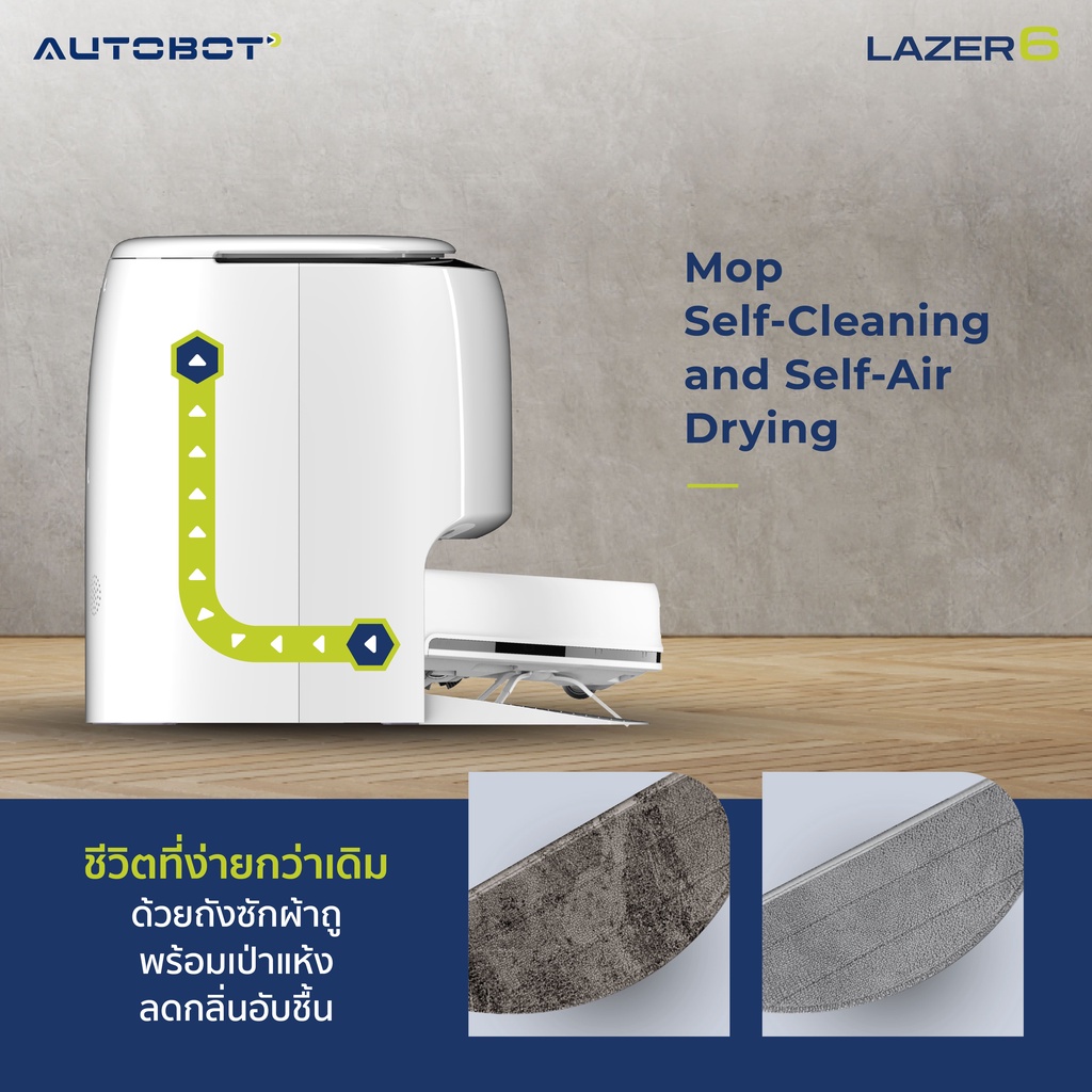 [ CLEARANCE ] AUTOBOT LAZER 6 หุ่นยนต์ดูดฝุ่น ถูพื้น ผล ิตน้ำอิเล็กโทรไลต์ ซักผ้าถู อบผ้า สินค้า DEMO