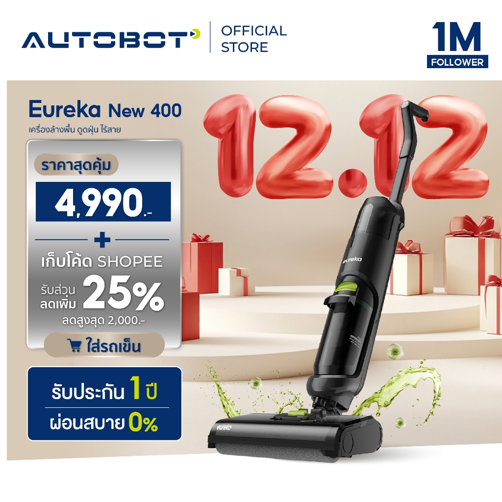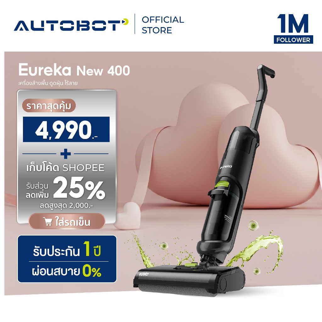 𝗔𝗨𝗧𝗢𝗕𝗢𝗧 x Eureka New 400 เครื่องล้างพื้น เครื่องดูดฝุ่น ไร้สาย ดูดน้ำ ขัดถูพื้น ใส่น้ำยาได้