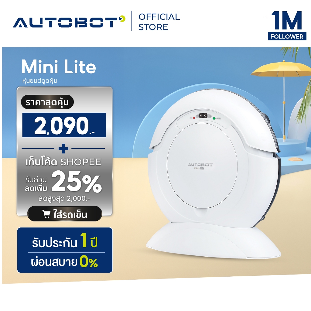 𝗔𝗨𝗧𝗢𝗕𝗢𝗧 หุ่นยนต์ดูดฝุ่น ถูพื้น อัจฉริยะ ยอดนิยม รุ่น MINI Lite รับประกันเครื่องและแบตเตอรี่ 1 ปี