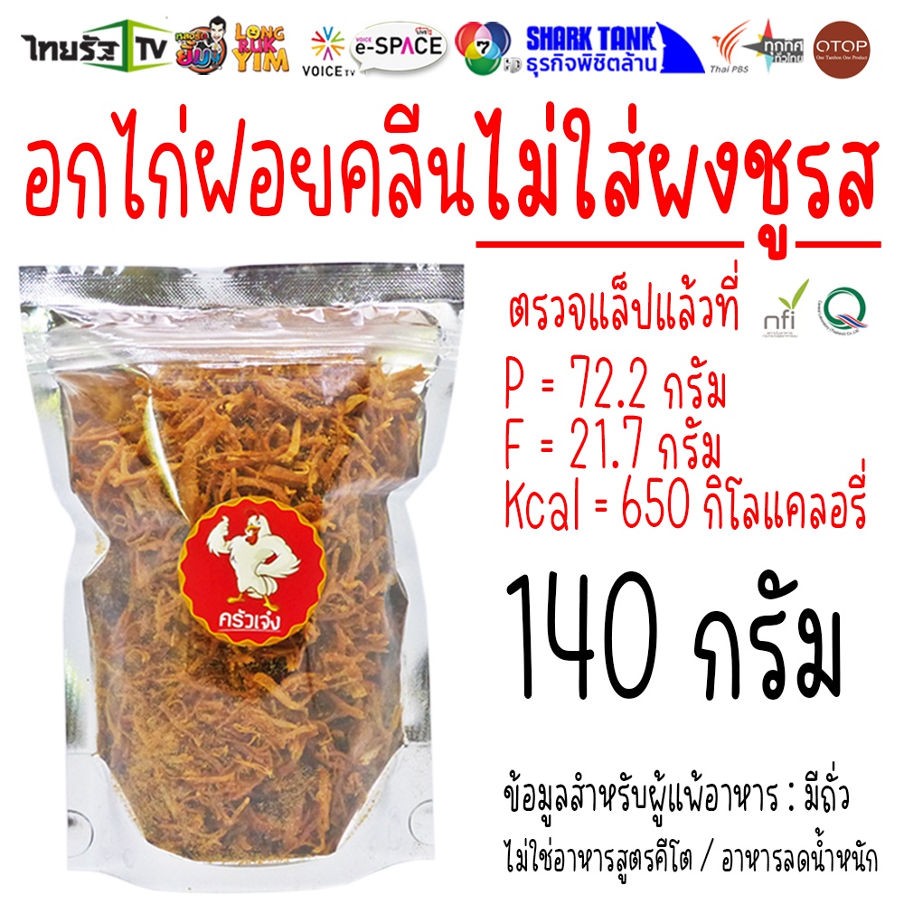 140 กรัม ⭐ ส่งฟรีไม่ต้องใช้โค้ด อกไก่อบกรอบ ไก่ฝอย ไก่หยอง อกไก่ สูตรคลีน ไม่มีผงชูรส | ครัวเจ๋ง | OTOP | 📺SHARK TANK