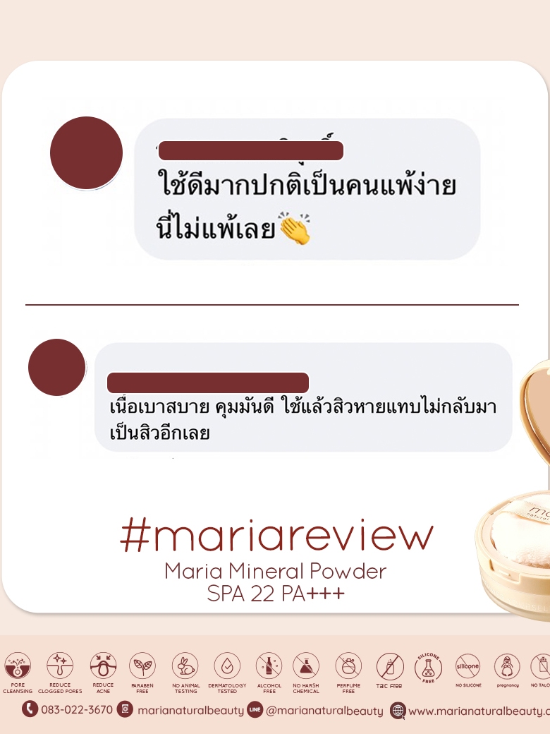 [โปรชุดเริ่มต้น] ชุดลองก่อน ผิวแพ้ง่าย MARIA แป้งแก้สิว 5 g+คุชชั่นแก้สิว 5 ml สูตรลดสิว ปกปิด