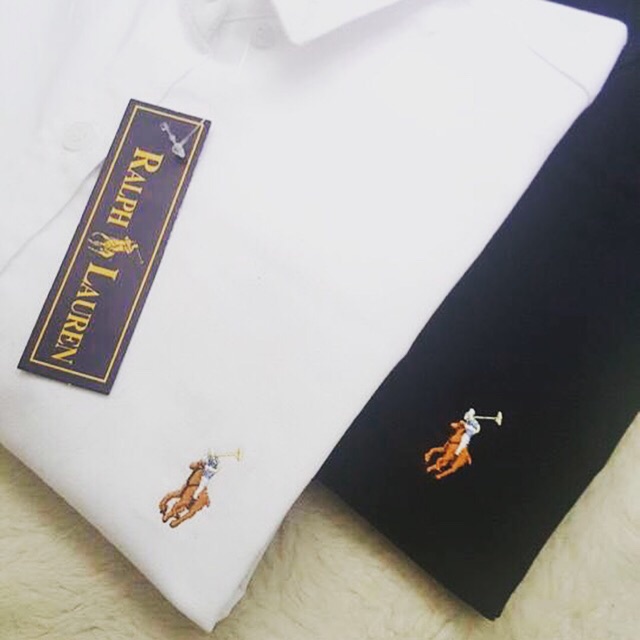 Poloเสื้อเชิ้ตแขนยาวสีพื้นขาวและดำ🐎🐎ใส่ได้ชายและหญิงผ้าoxford