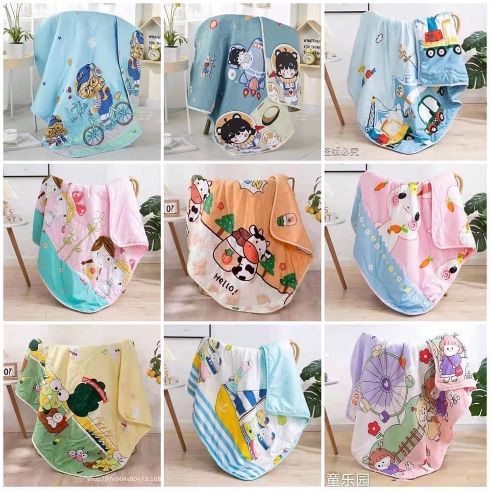 ผ้าห่มเด็ก กันไรฝุ่น เนื้อผ้าคอตตอน นุ่มทอละเอียด ลายการ์ตูนน่ารัก สีพาสเทล