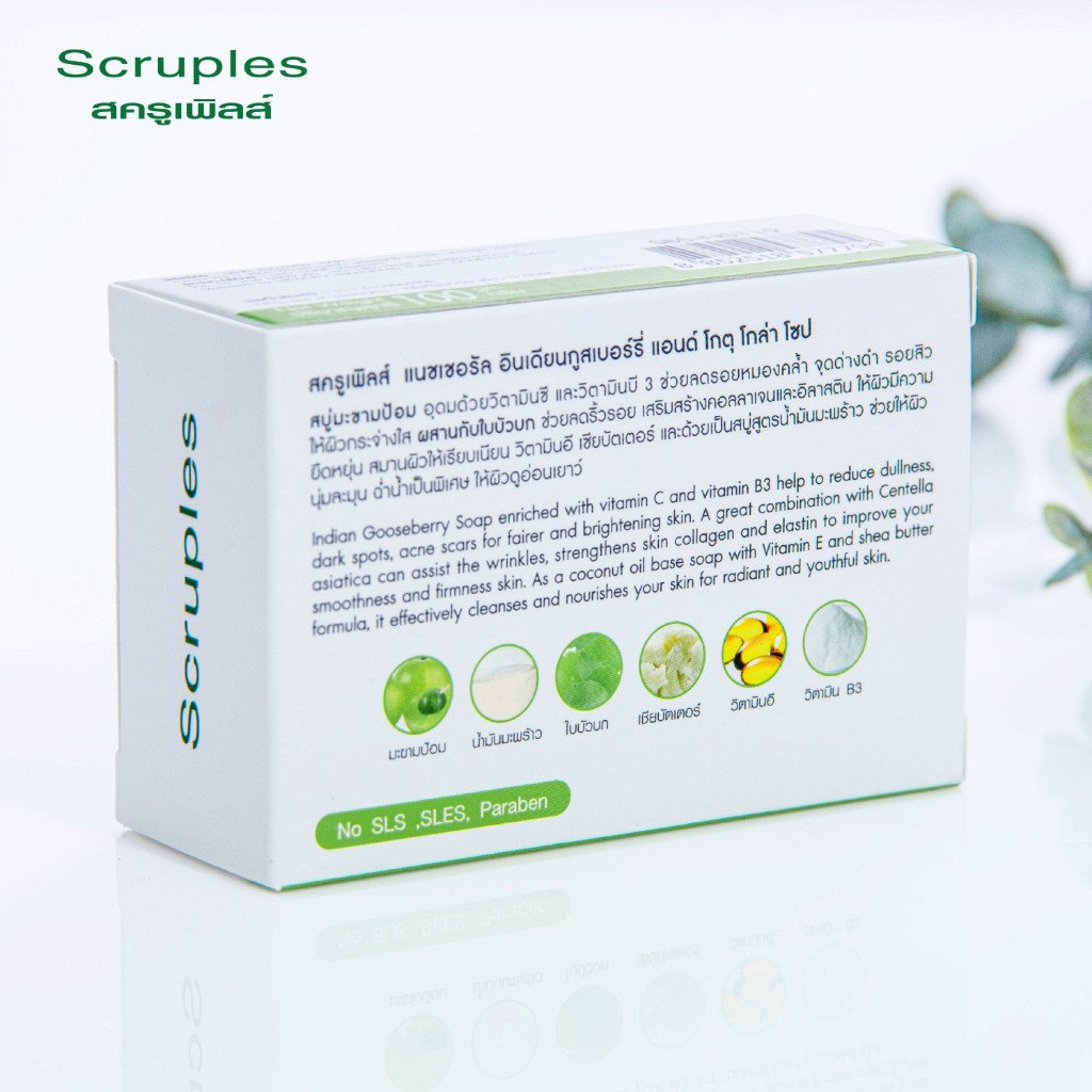 De leaf Thanaka สบู่ เดอลีฟ ทานาคา สบู่ผิวขาว SPT-MWS614 * Scruples Natural Soap สบู่มะขามป้อม + ใบบัวบก SBS-NS119