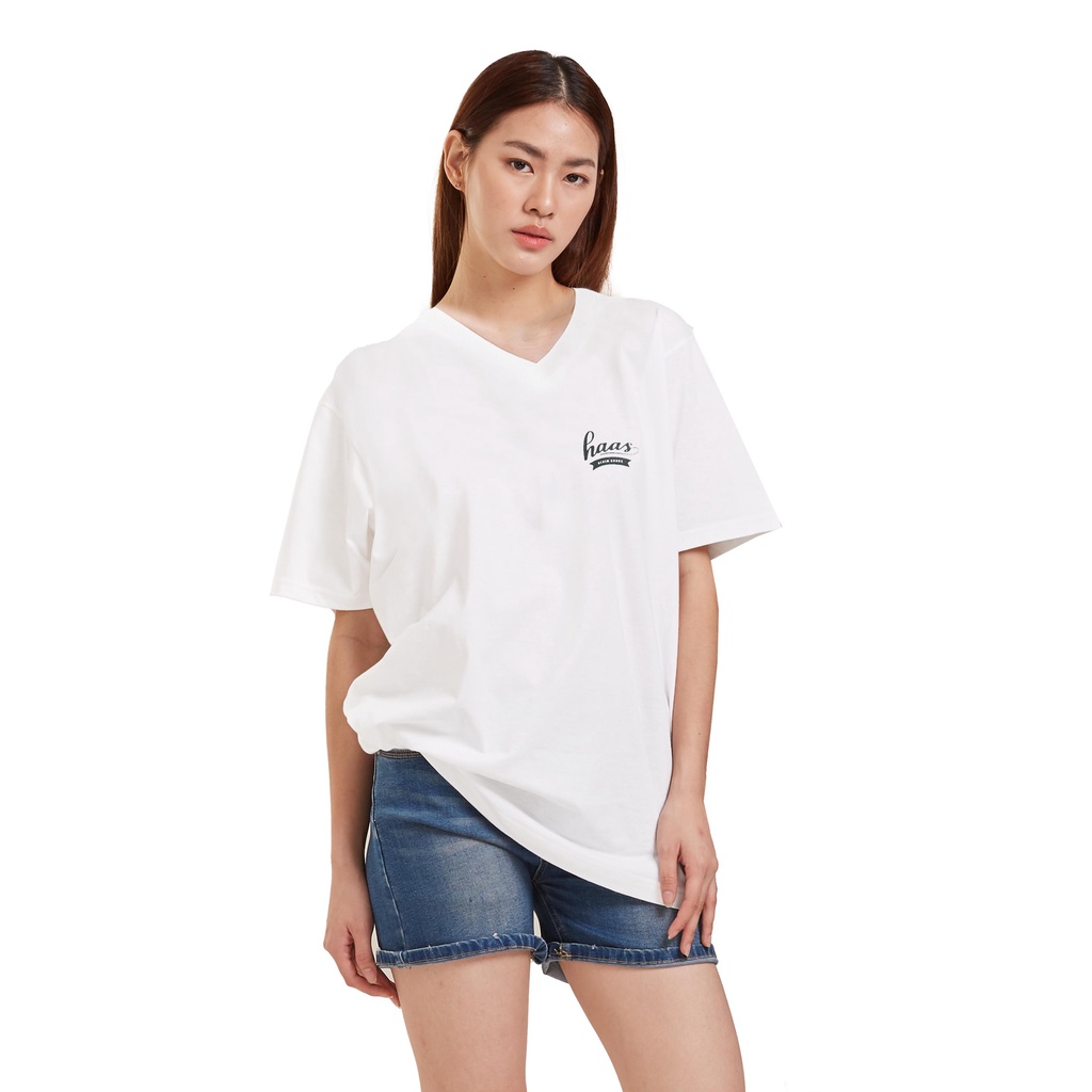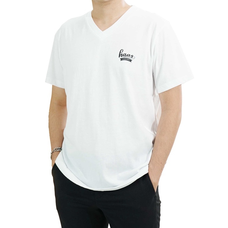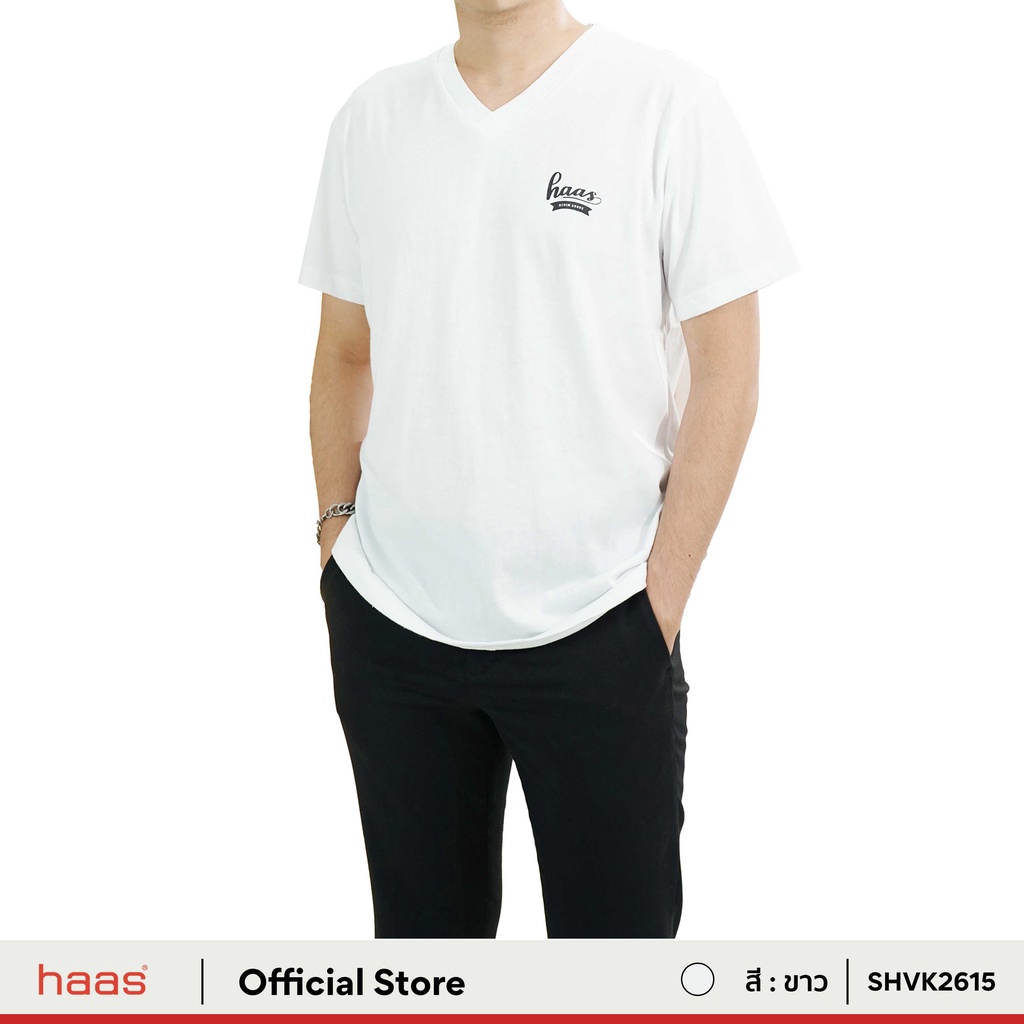 haas เสื้อยืดแขนสั้น คอวี unisex ผู้ชาย ผู้หญิง ลายสกรีน haas SHVK2615