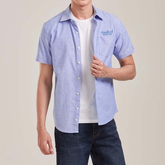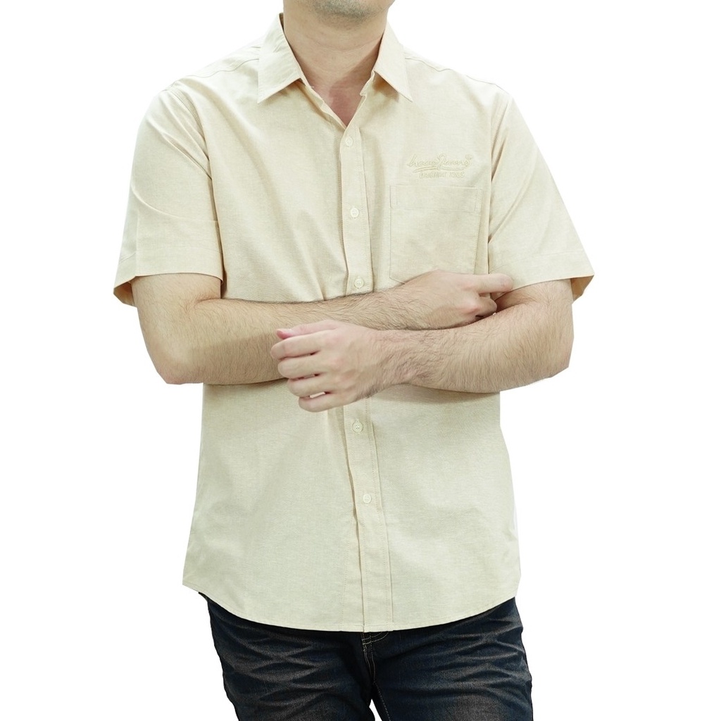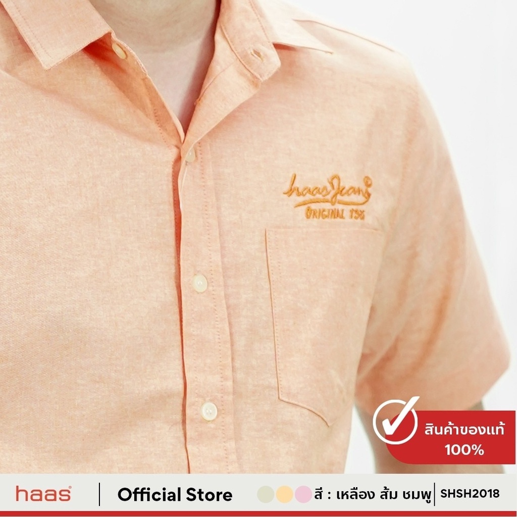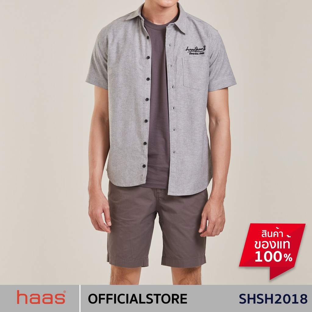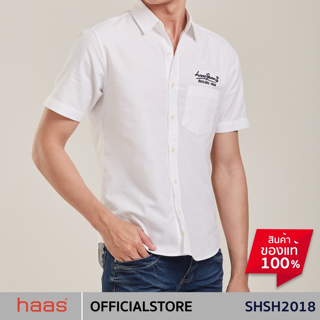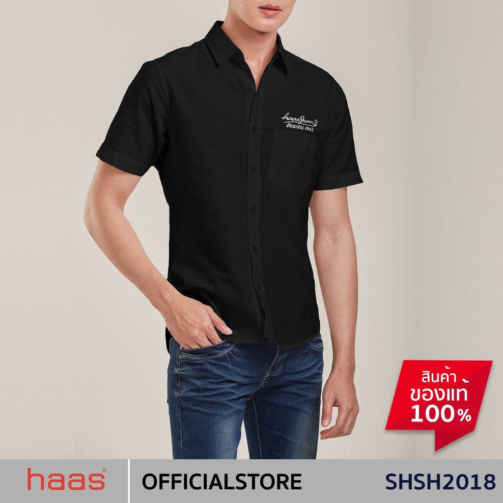 haas เสื้อเชิ้ตแขนสั้น unisex ผู้ชาย ผู้หญิง สีพื้น ลายปัก haas Jeans SHSH2018