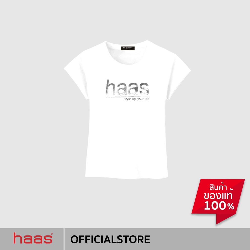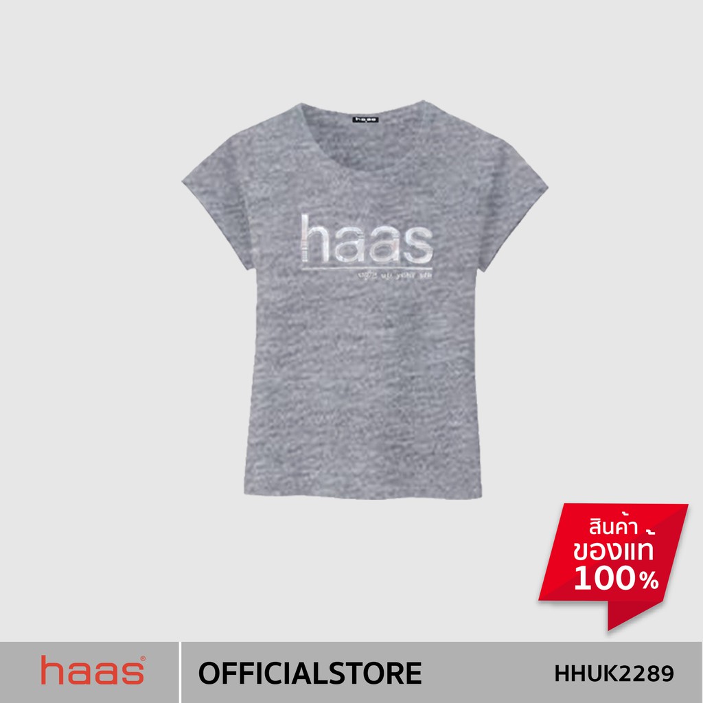 haas เสื้อยืดแขนสั้น ผู้หญิง ลายสกรีน haas สีเงิน HHUK2289A