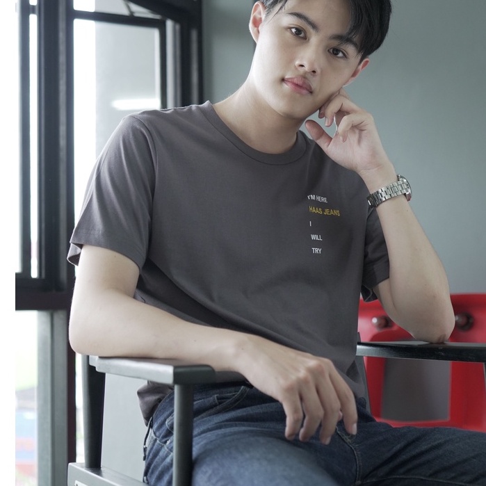 haas เสื้อยืดแขนสั้น unisex ผู้ชาย ผู้หญิง ลายสรีน I'M HERE SBSK2593