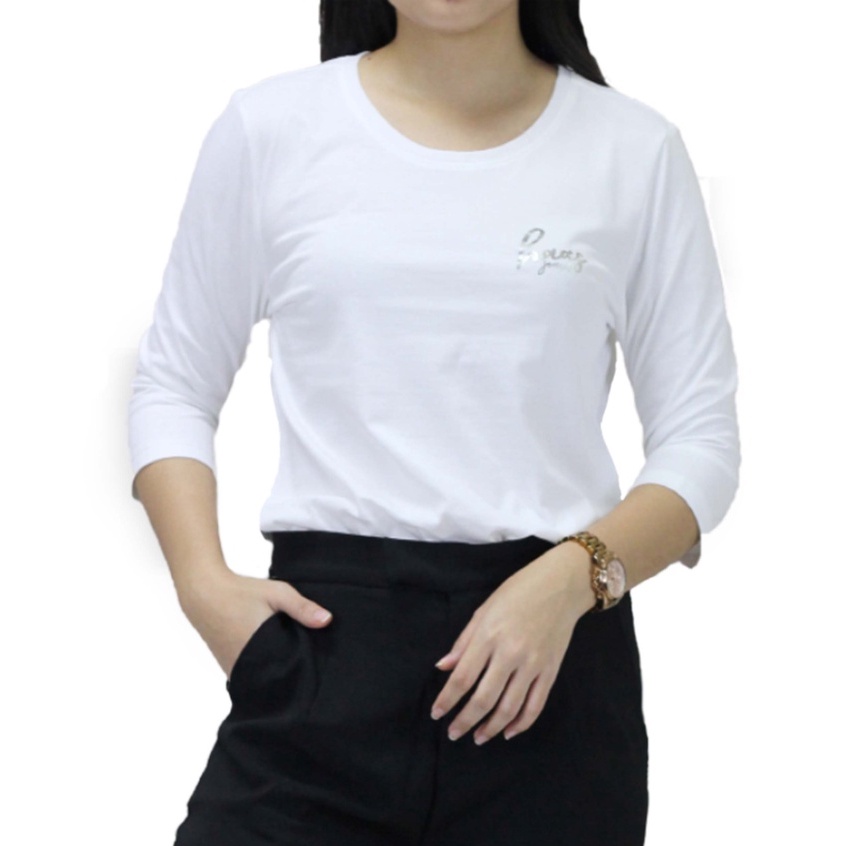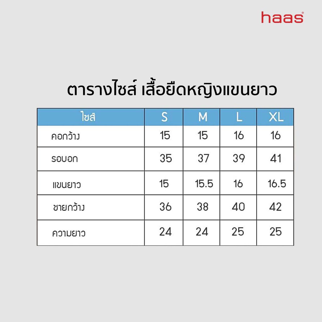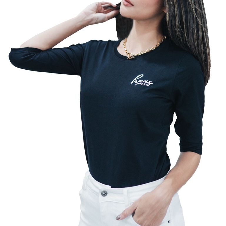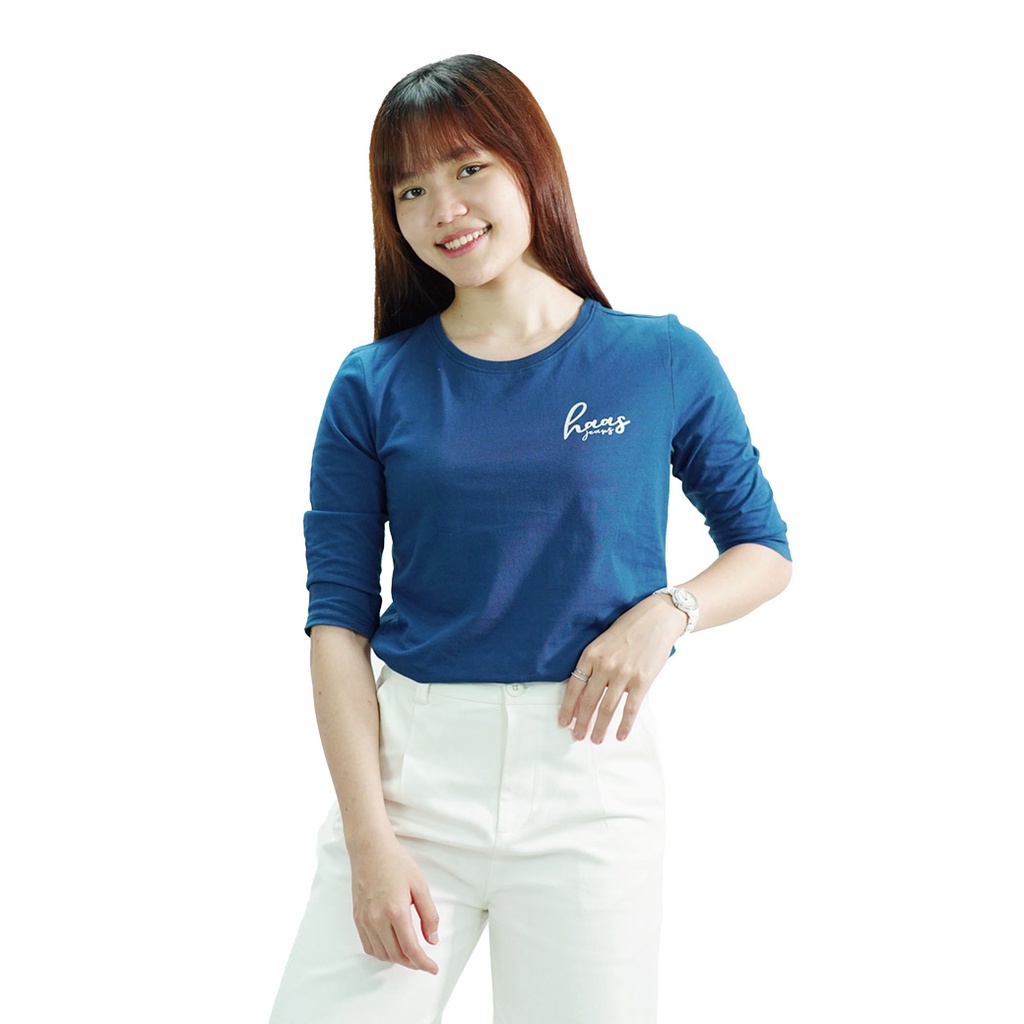 haas เสื้อยืดแขนยาว ผู้หญิง แขนสามส่วน ลายสกรีน haas HHUK4323