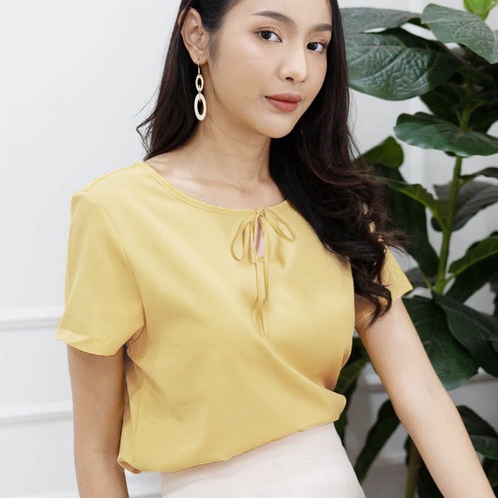 haas เสื้อเบลาส์ เสื้อผู้หญิง แขนสั้น สีพื้น ผ้าโพลีเอสเตอร์ HBSU2911