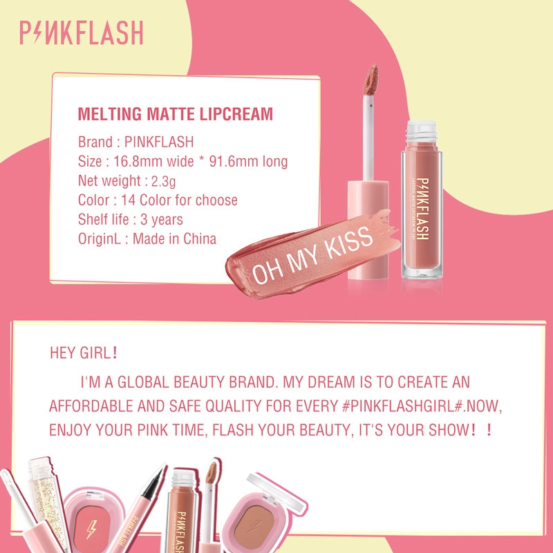 Pinkflash OhMyKiss ลิปสติก เนื้อแมตต์ เพิ่มความชุ่มชื้น ติดทนนาน