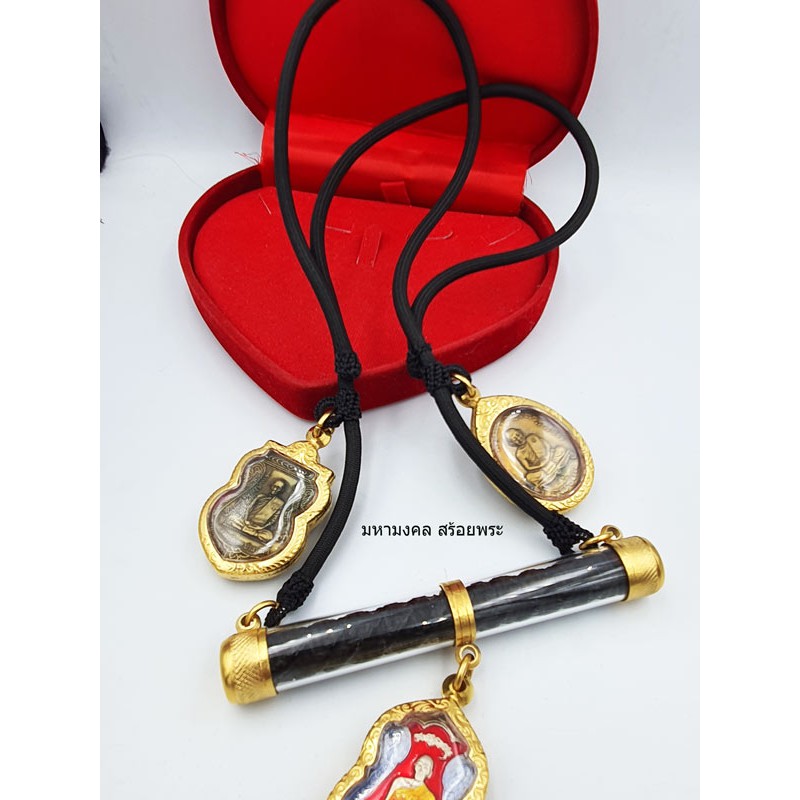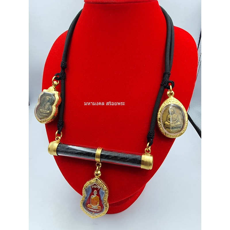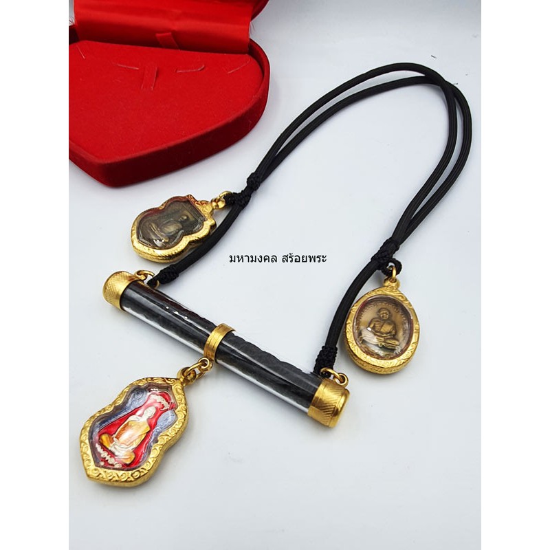 SG031 สร้อยเชือกร่มดำล้วนแขวนตะกรุด แขวนพระ 3 องค์ เชือกปรับได้ หนา 4 มิล