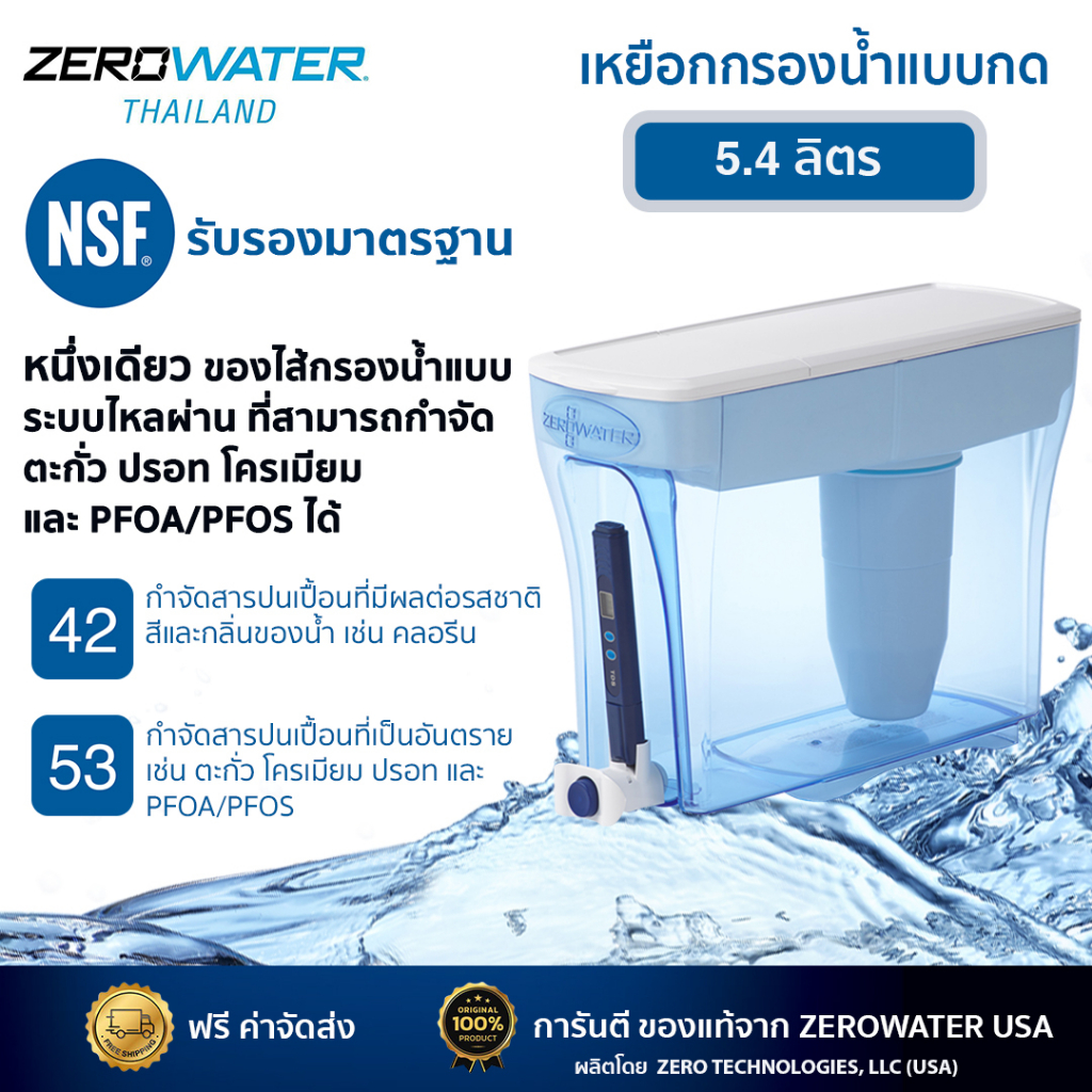 เหยือกกรองน้ำซีโร่วอเตอร์/ZeroWater® แบบกด ขนาด 5.4 ลิตร (ฟรีจัดส่ง/TDS meter)