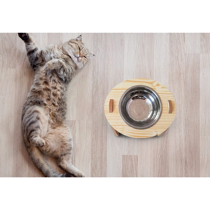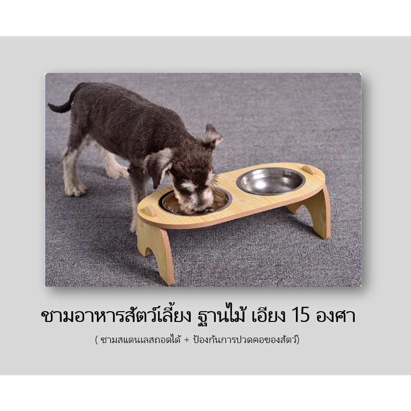 [ ABC cat ] ชามอาหารสัตว์เลี้ยง แบบชามฐานไม้ ชามสำหรับน้องหมาน้องแมว