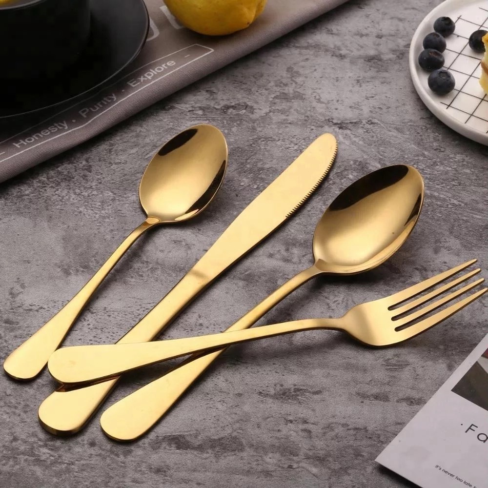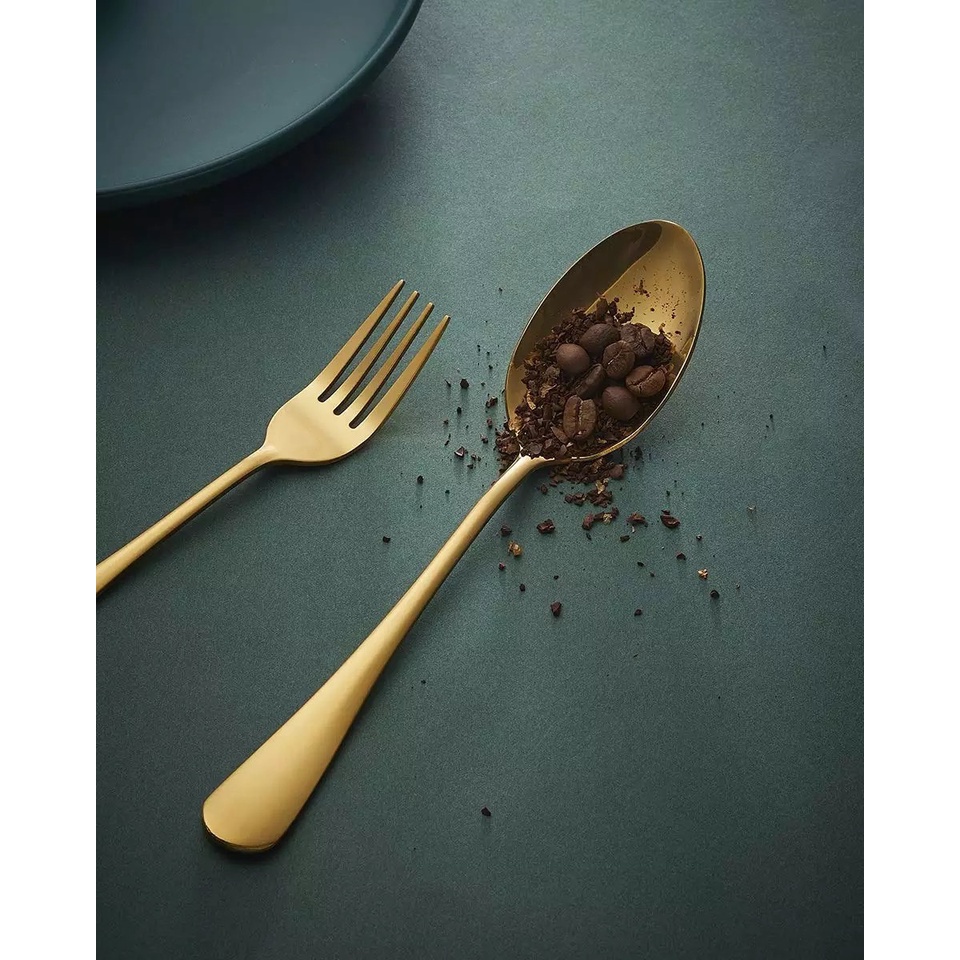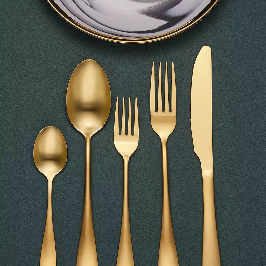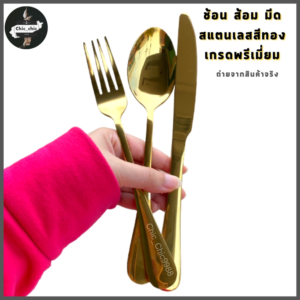 ช้อนส้อมกินข้าวแบบหนา มีดเสต็กสแตนเลส 304--สีทอง--เกรดพรีเมี่ยม สวยงาม ไม่ลอก ไม่บาดปาก พร้อมส่ง #C-0031