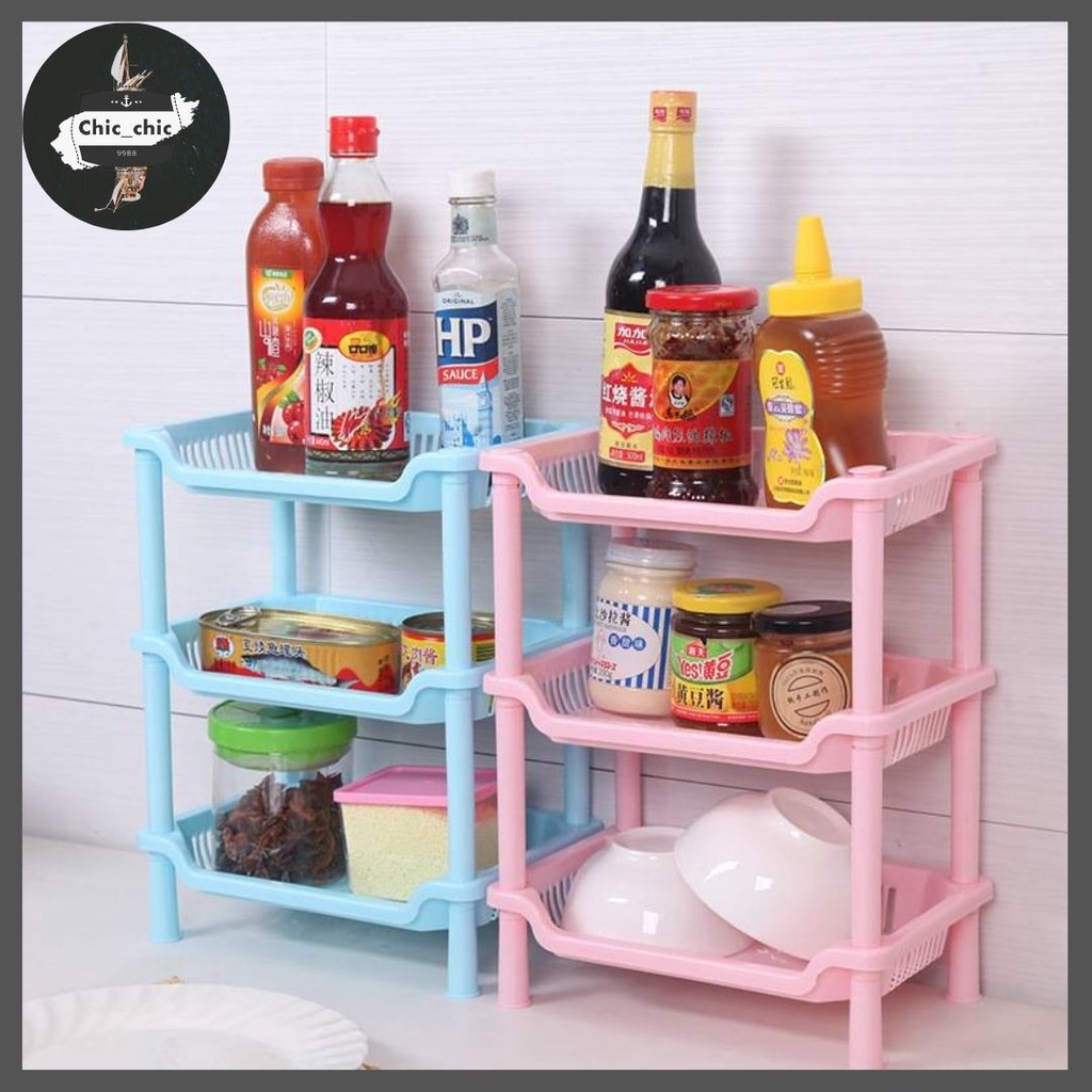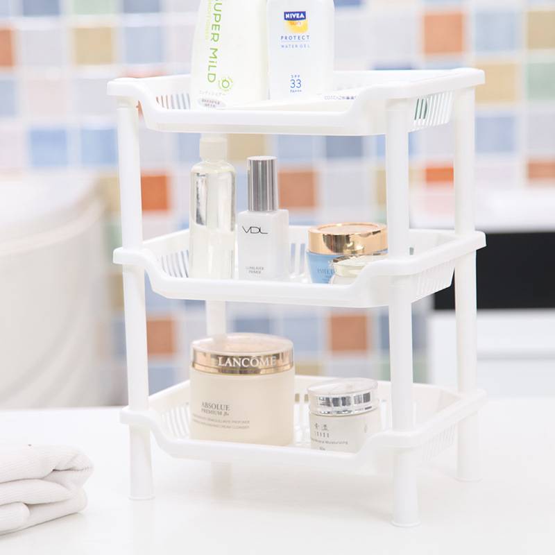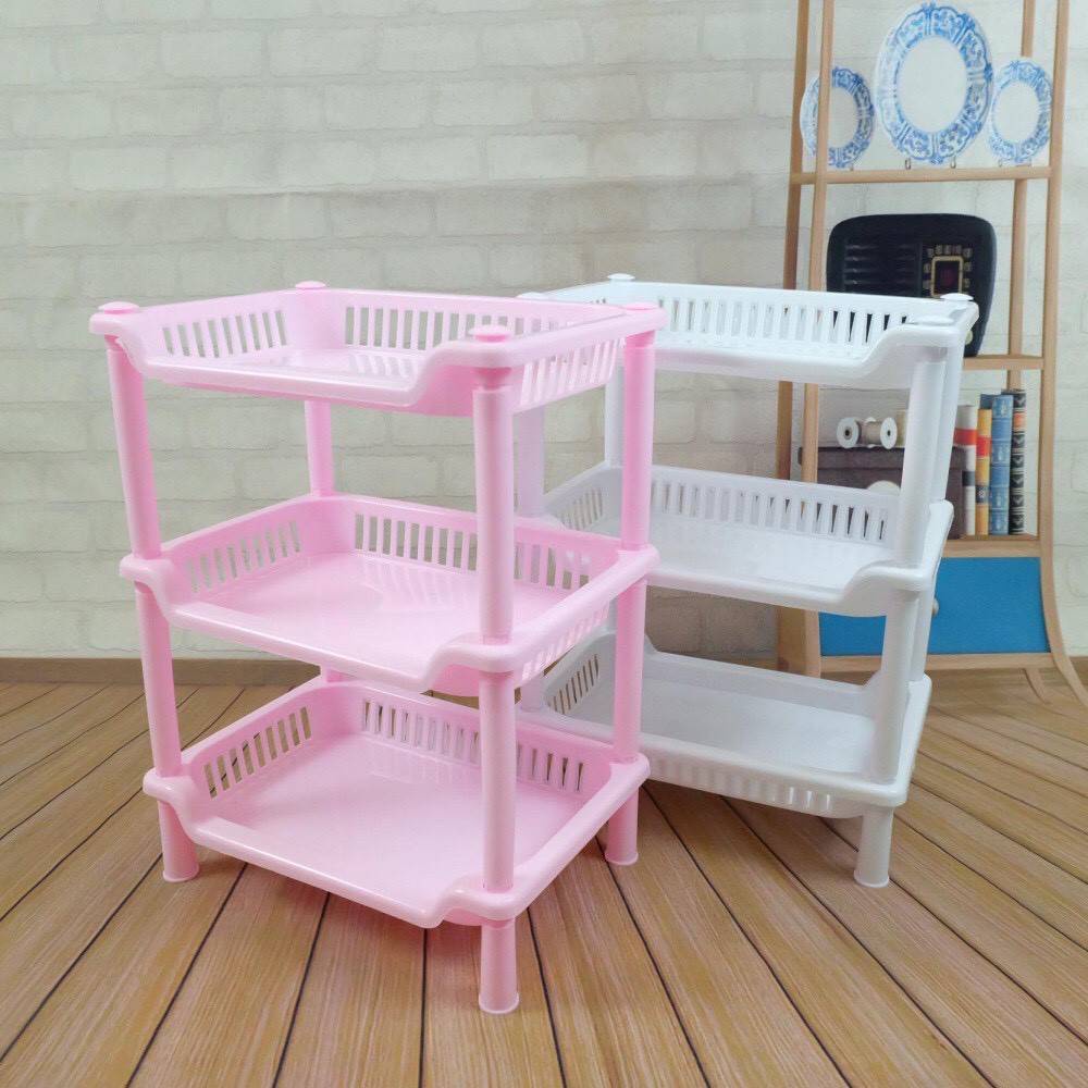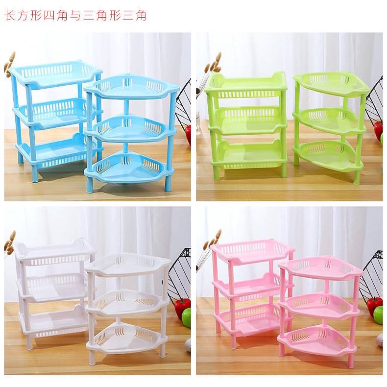 🛒ชั้นวางของพลาสติก ทรงสี่เหลี่ยม,สามเหลี่ยม 3 ชั้น วางของในห้องน้ำ ชั้นวางของ ตะกร้าพลาสติก🛒 #O-0009