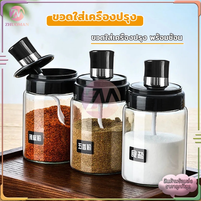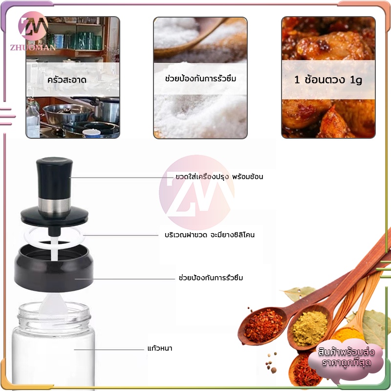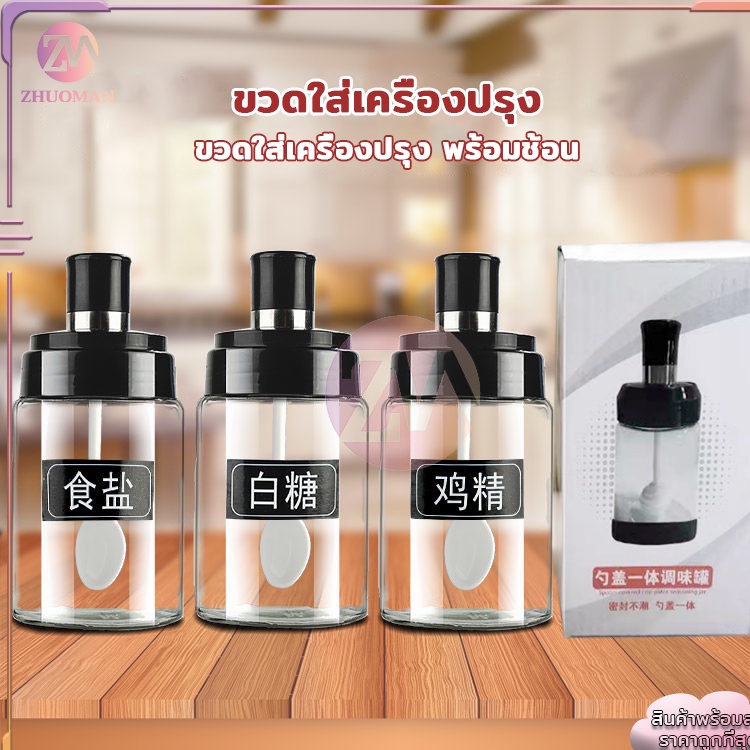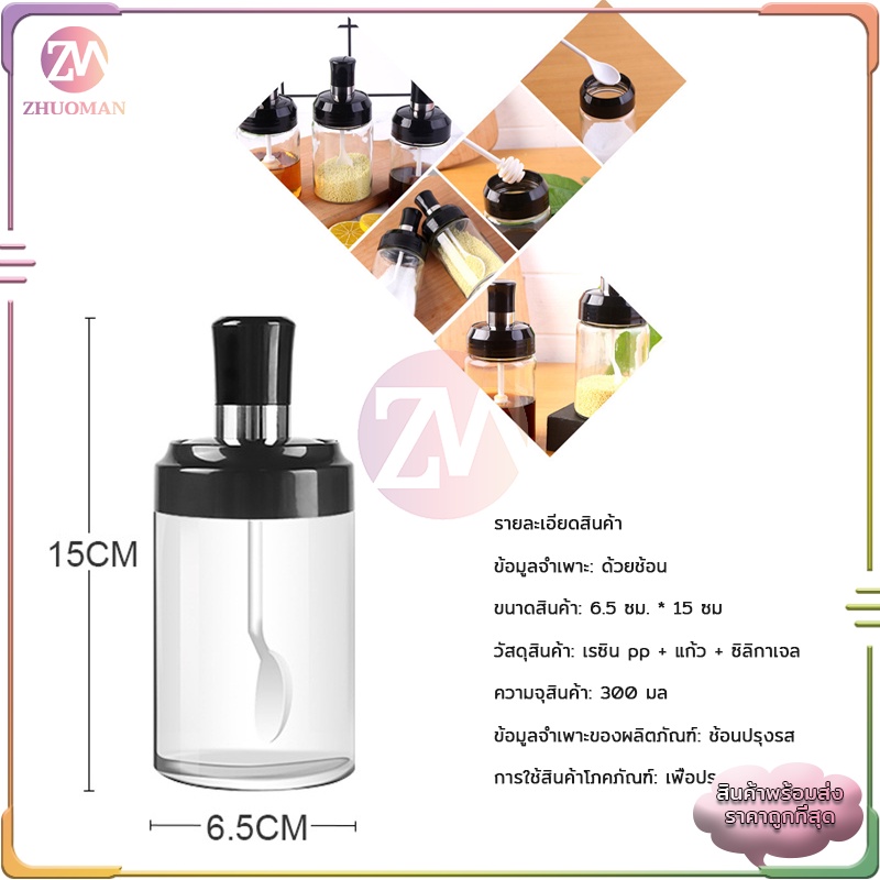 ขวดใส่เครื่องปรุง กระปุกใส่เครื่องเทศ 300MLมียางซิลิโคนกันชื้นตรงฝาปิดปิดได้แน่น สะอาด ฝุ่นไม่เข้า