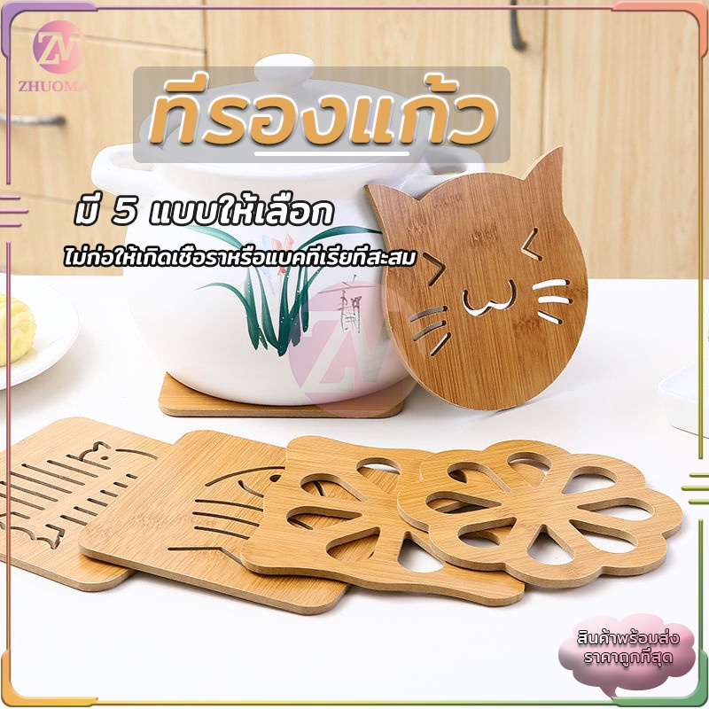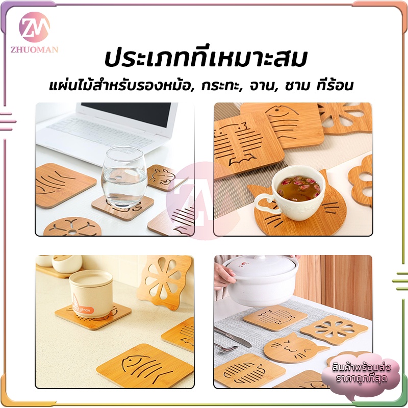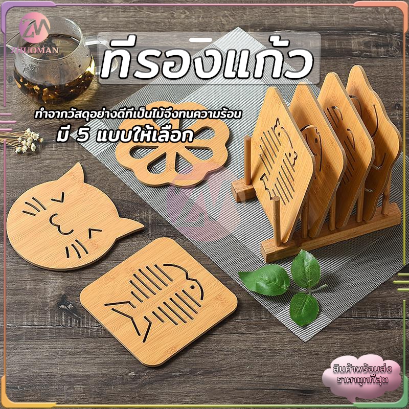 ที่รองแก้ว/หม้อ ลายไม้ กันลื่น ทนความร้อน หนา