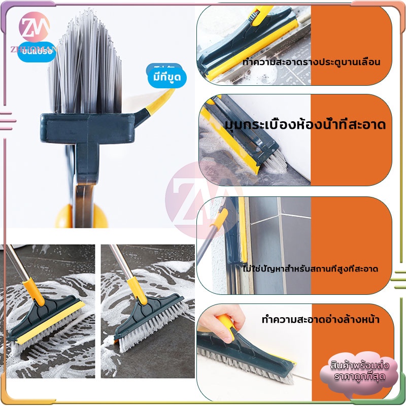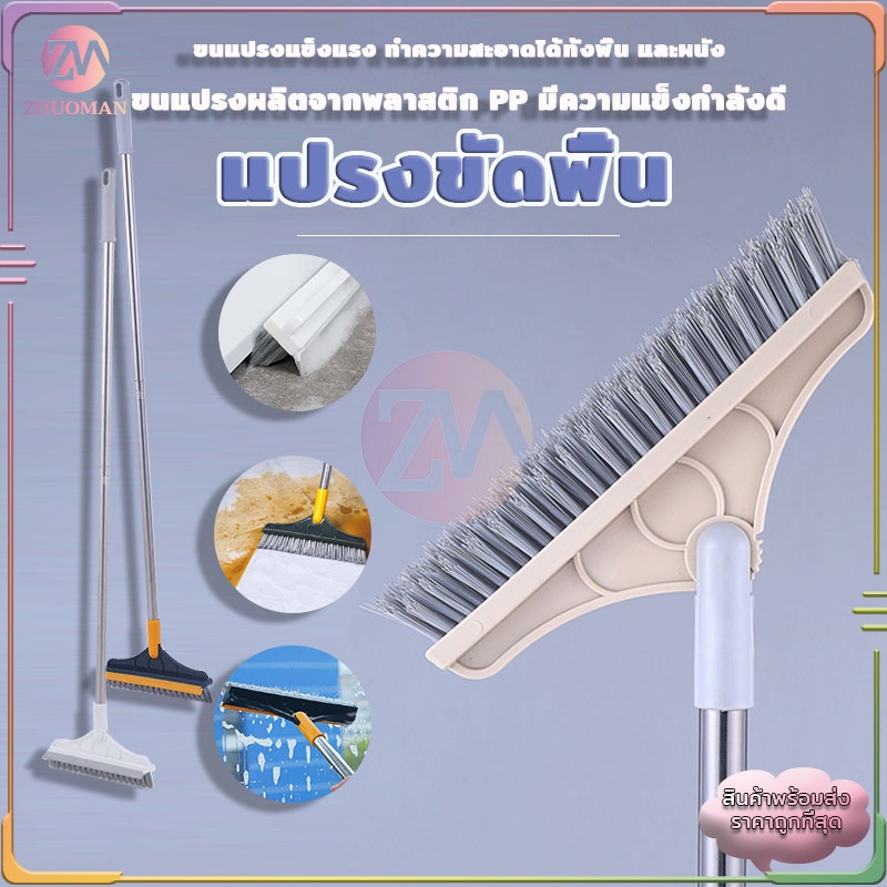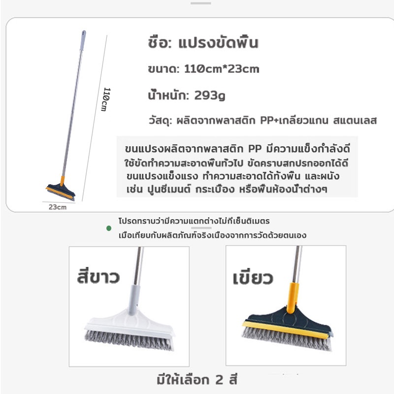 แปรงขัดพื้น 2in1 ปาดน้ำ นด้ามยาว ผลิตจากพลาสติก PP มีความแข็งกำลังดี ได้ทุกซอกทุกมุม มี 2 สี