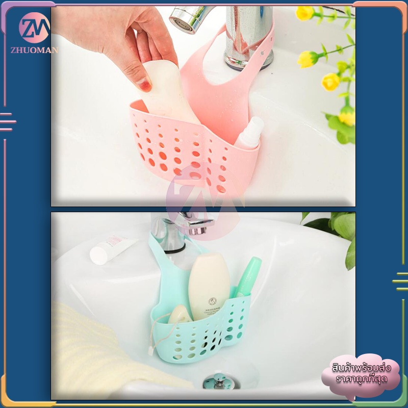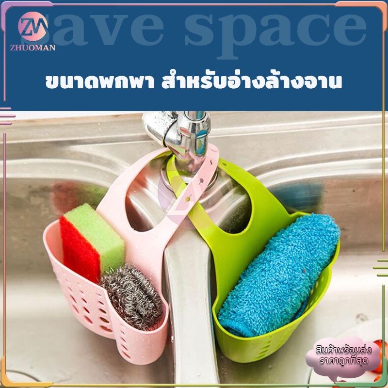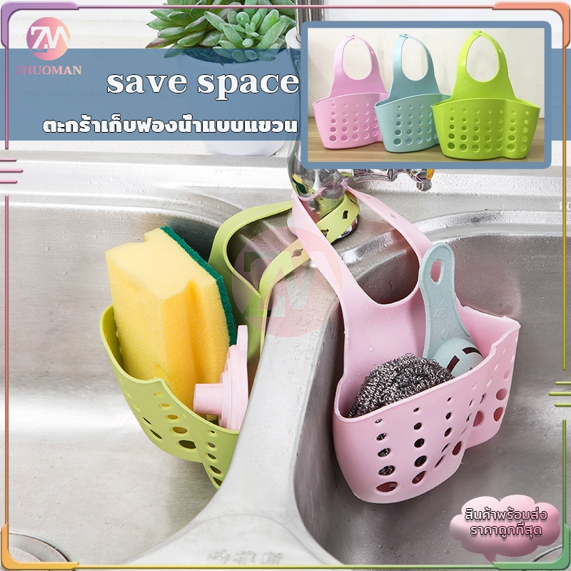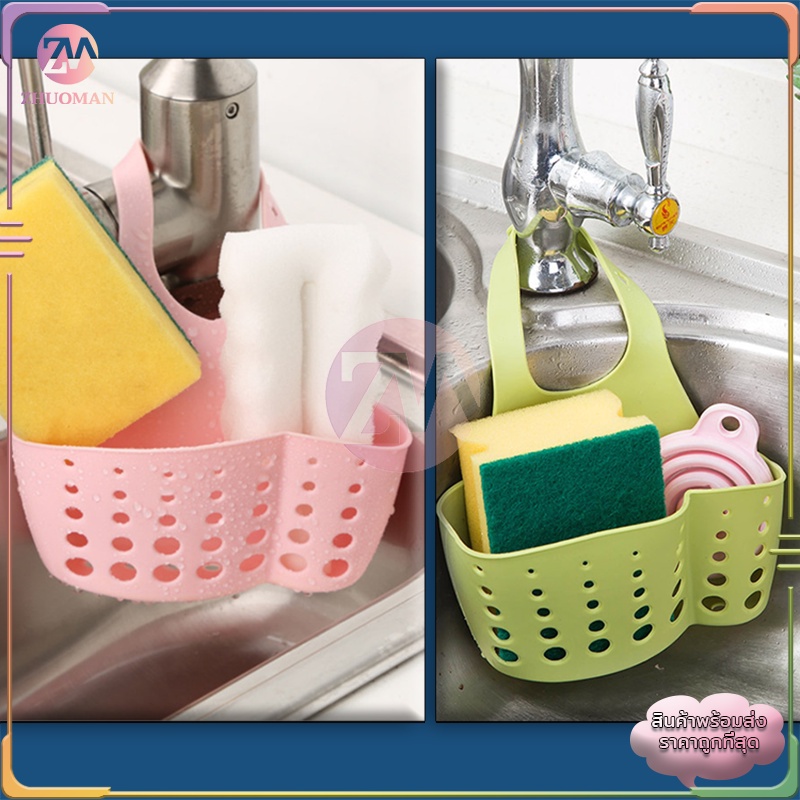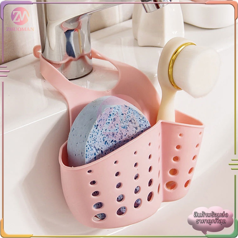 ตะกร้าใส่ฟองน้ำ แขวนอุปกรณ์สำหรับทำความสะอาดมีสายคล้องถอดออกและพกพา จัดระเบียบสิ่งของบริเวณที่ล้างจานให้ดูน่ารัก