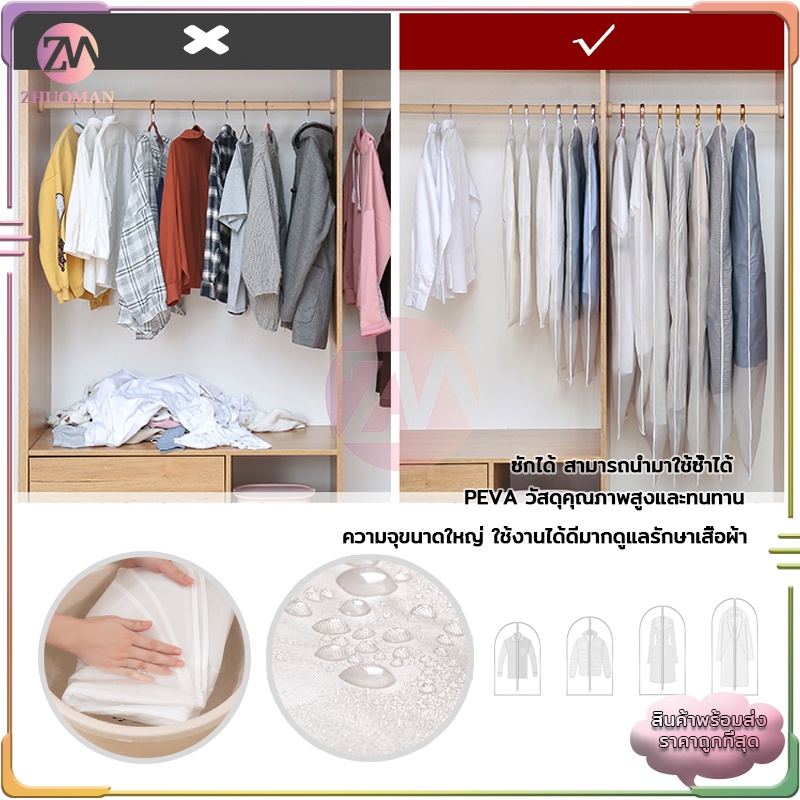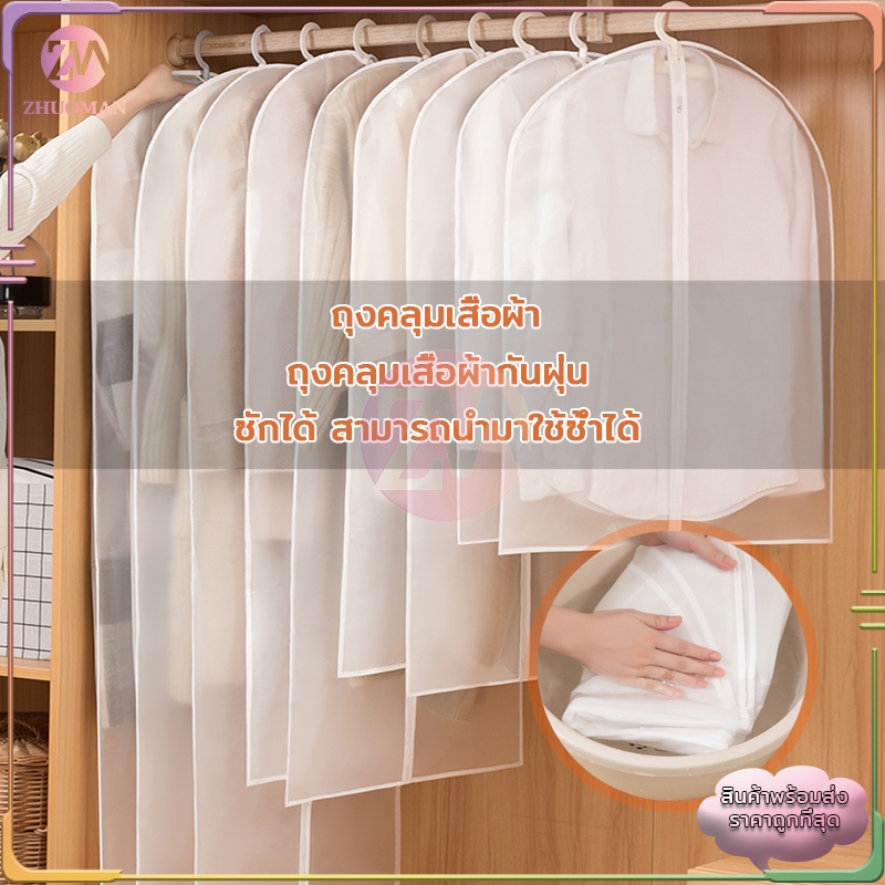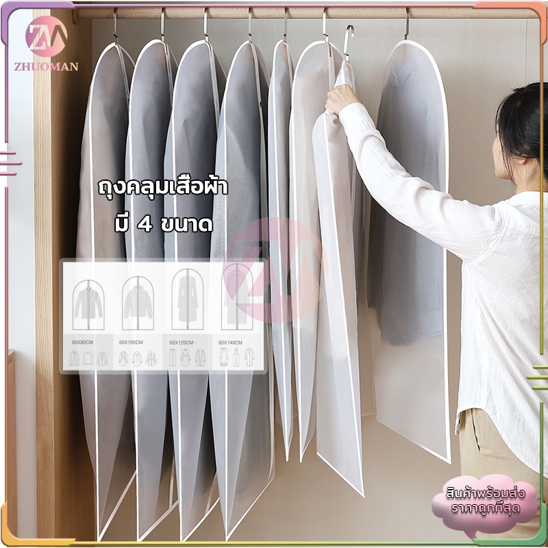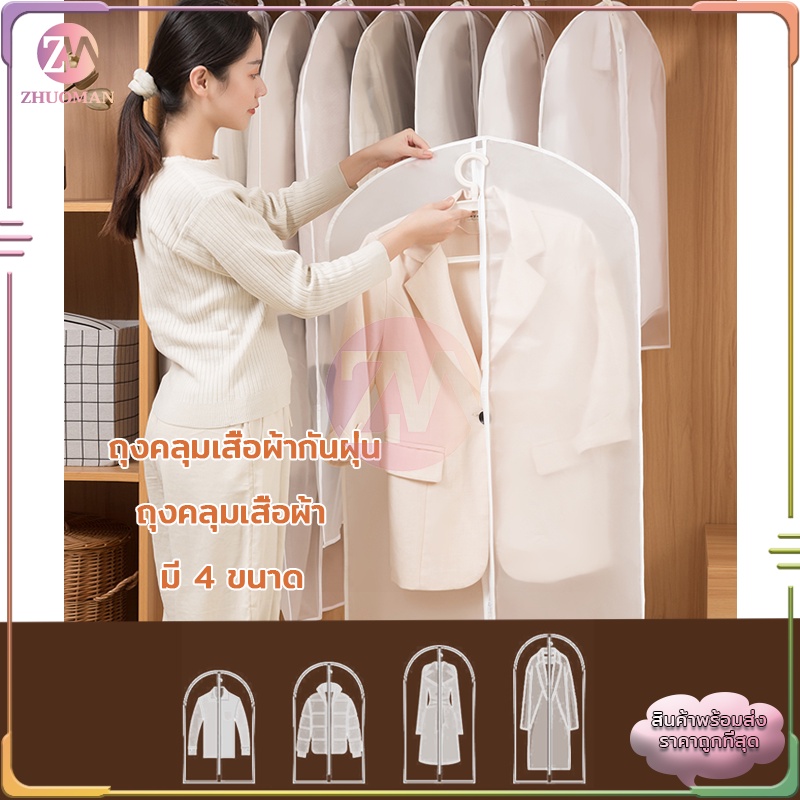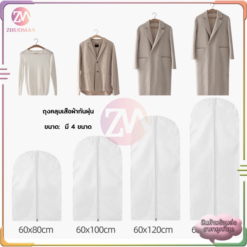 ถุงคลุมเสื้อผ้า กันฝุ่นและสิ่งสกปรก สดุคุณภาพสูงและทนทาน ซักได้ สามารถนำมาใช้ซ้ำได้ มี 4 ขนาด