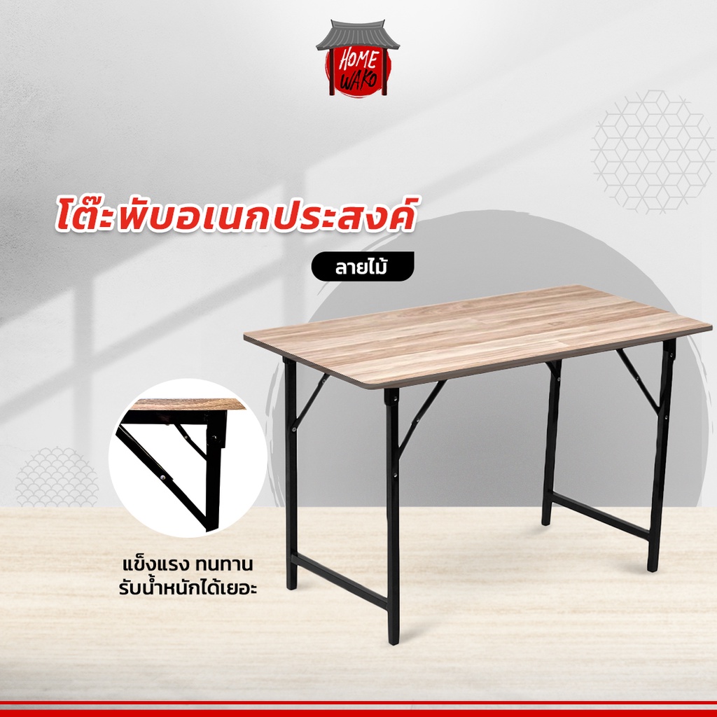 โต๊ะพับอเนกประสงค์ โต๊ะวางของ ลายไม้ ขนาดใหญ่ รับน้ำหนักได้เยอะ