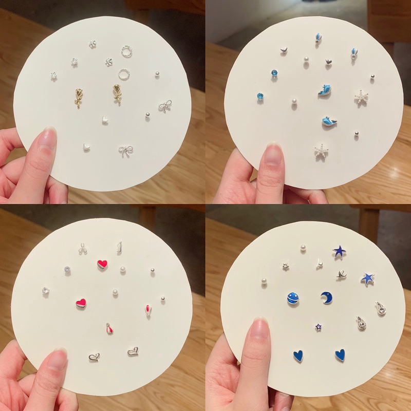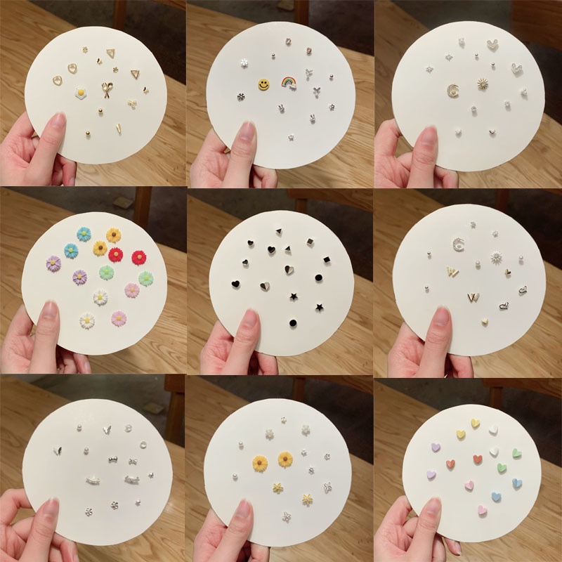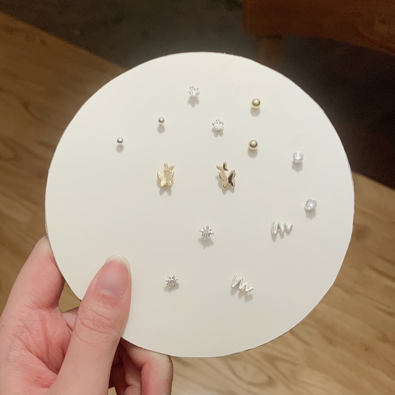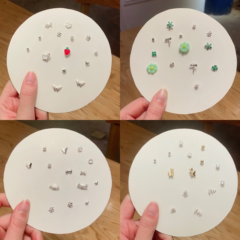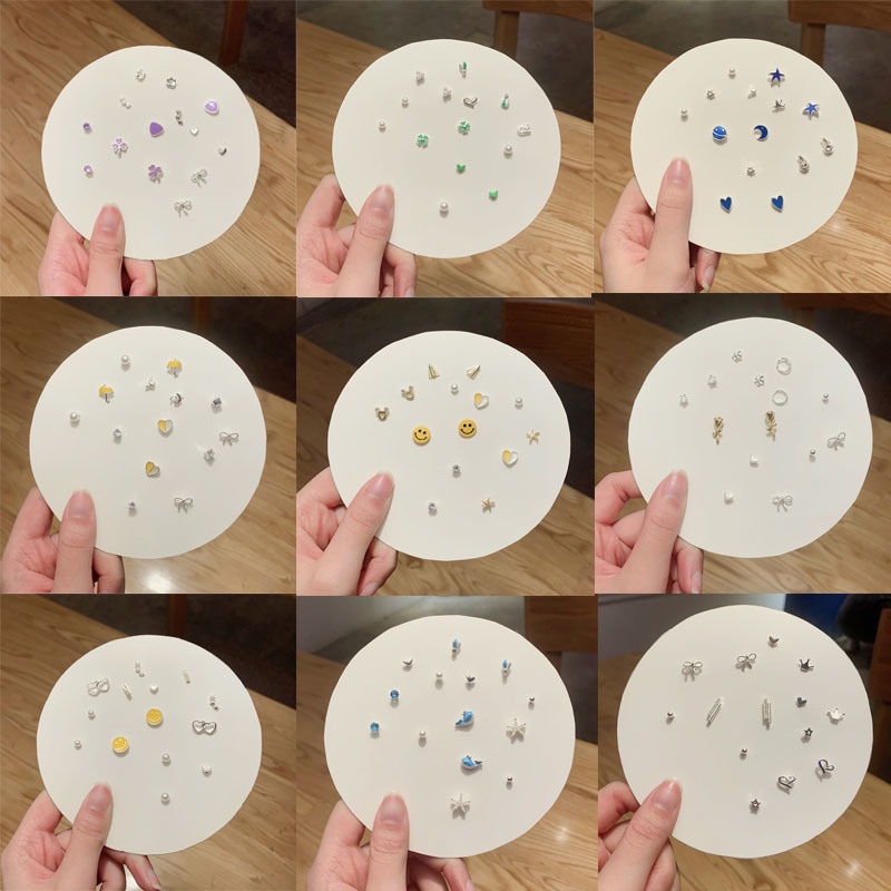 ชุดเครื่องประดับ ต่างหูแบบติดหู จี้รูปผีเสื้อ ดอกไม้ หัวใจ แฟชั่นสำหรับผู้หญิง 7 คู่