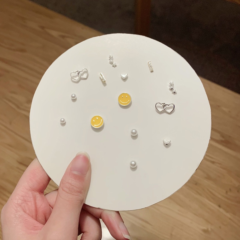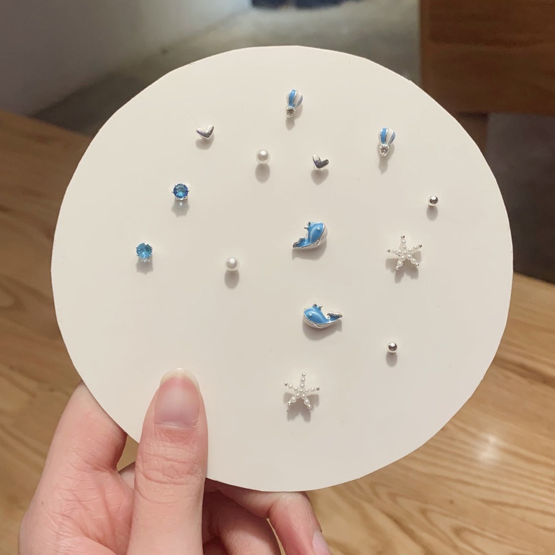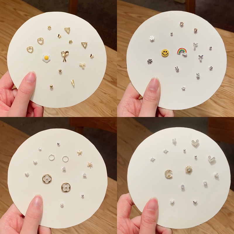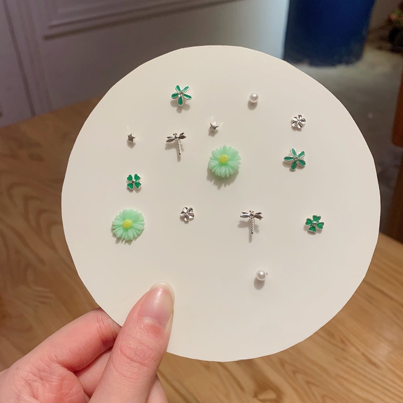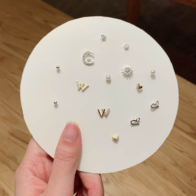 ชุดเครื่องประดับ ต่างหูแบบติดหู จี้รูปผีเสื้อ ดอกไม้ หัวใจ แฟชั่นสำหรับผู้หญิง 7 คู่