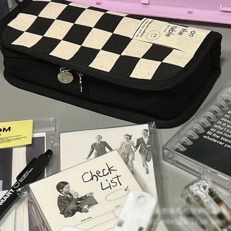 กระเป๋าดินสอ ลายตารางหมากรุก ขนาดเล็ก จุของได้เยอะ แบบเรียบง่าย สร้างสรรค์ สําหรับใส่เครื่องเขียน 1 ชิ้น