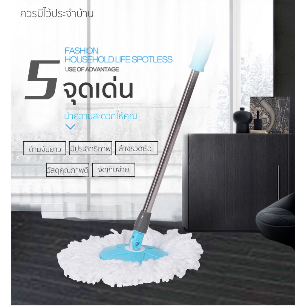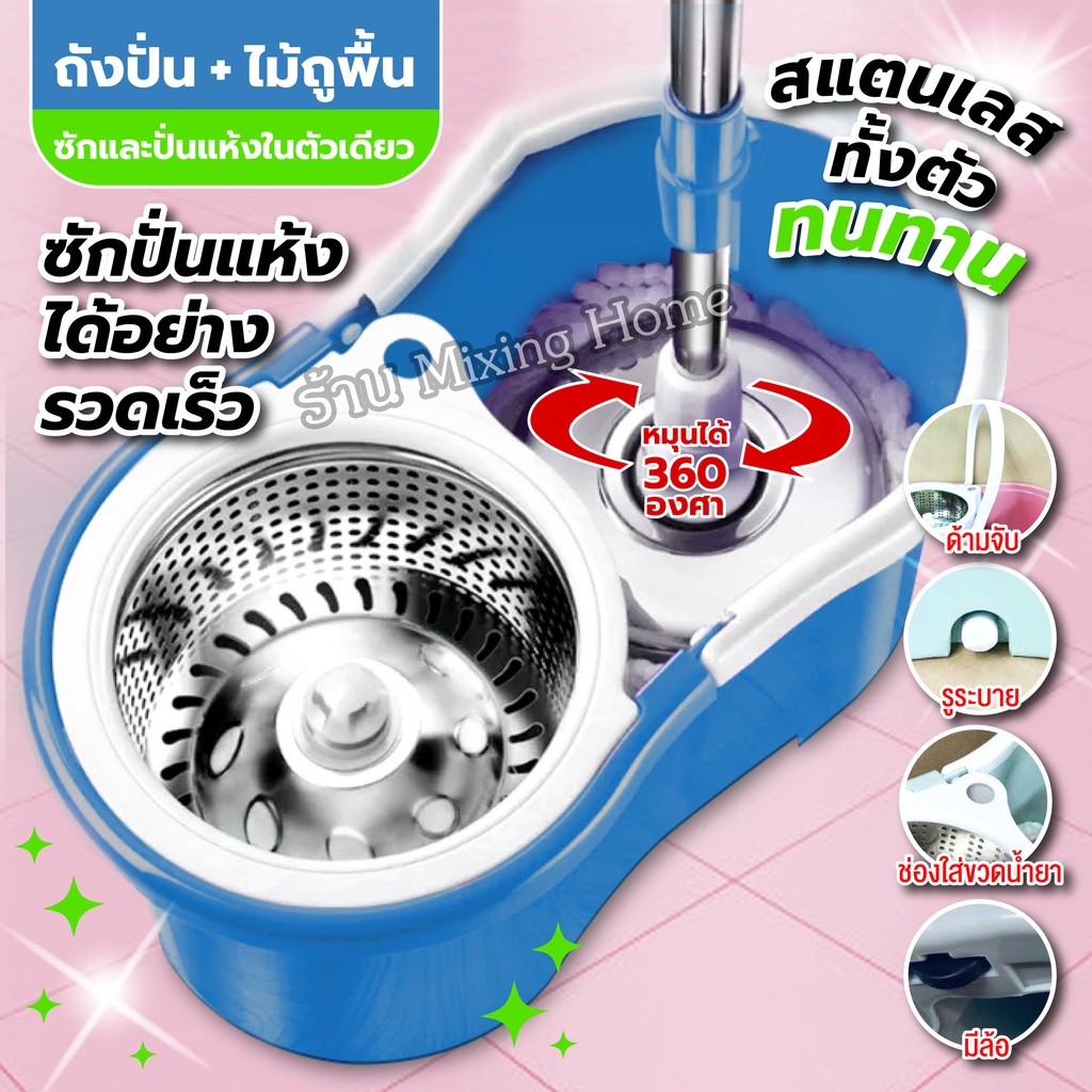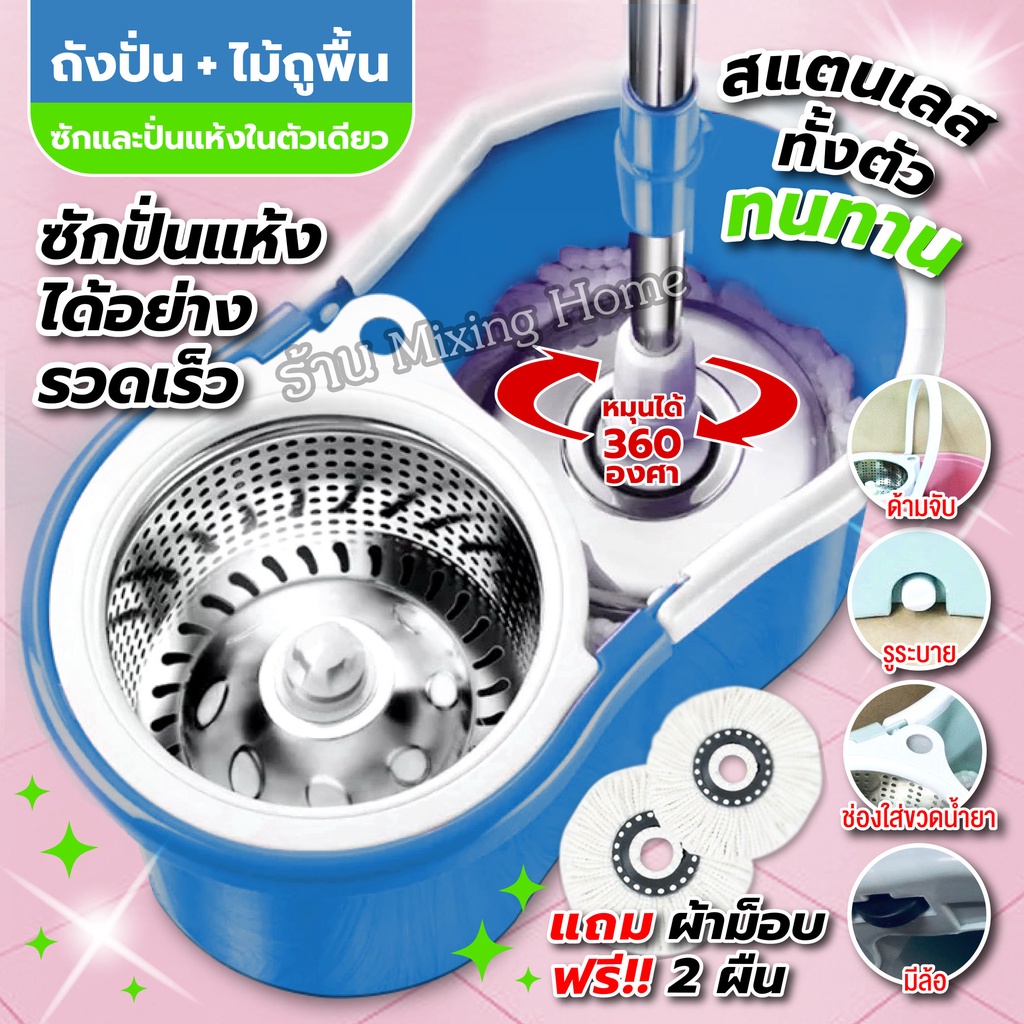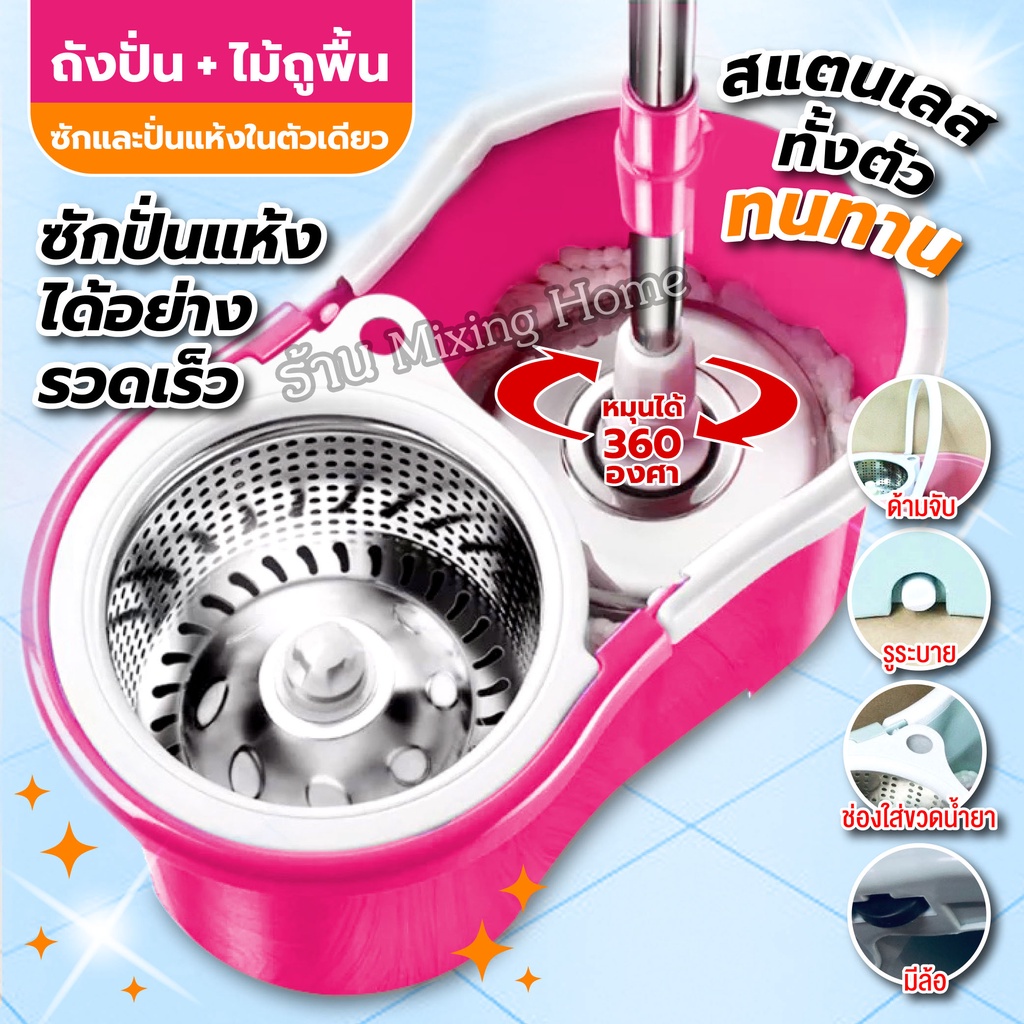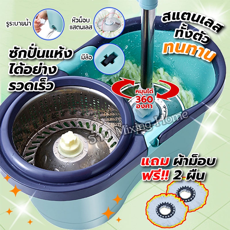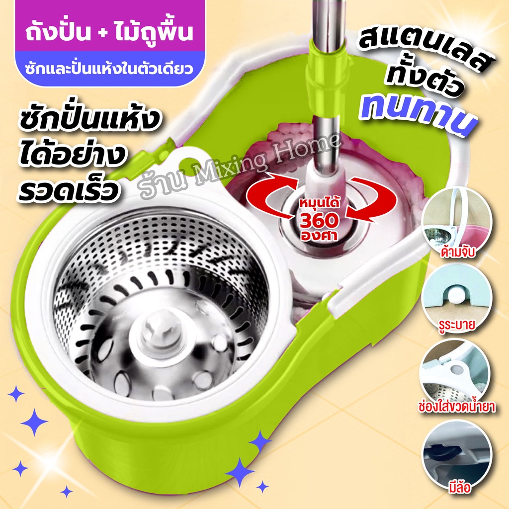 [โค้ด V47L8WM ลด 10%] ไม้ถูพื้น ไม้ม็อบ มีล้อ Spin Mop ชุดถังปั่นสแตนเลส ชุดไม้ถูพื้น ถังปั่นไม้ม๊อบ ถังปั่นสแตนเลส