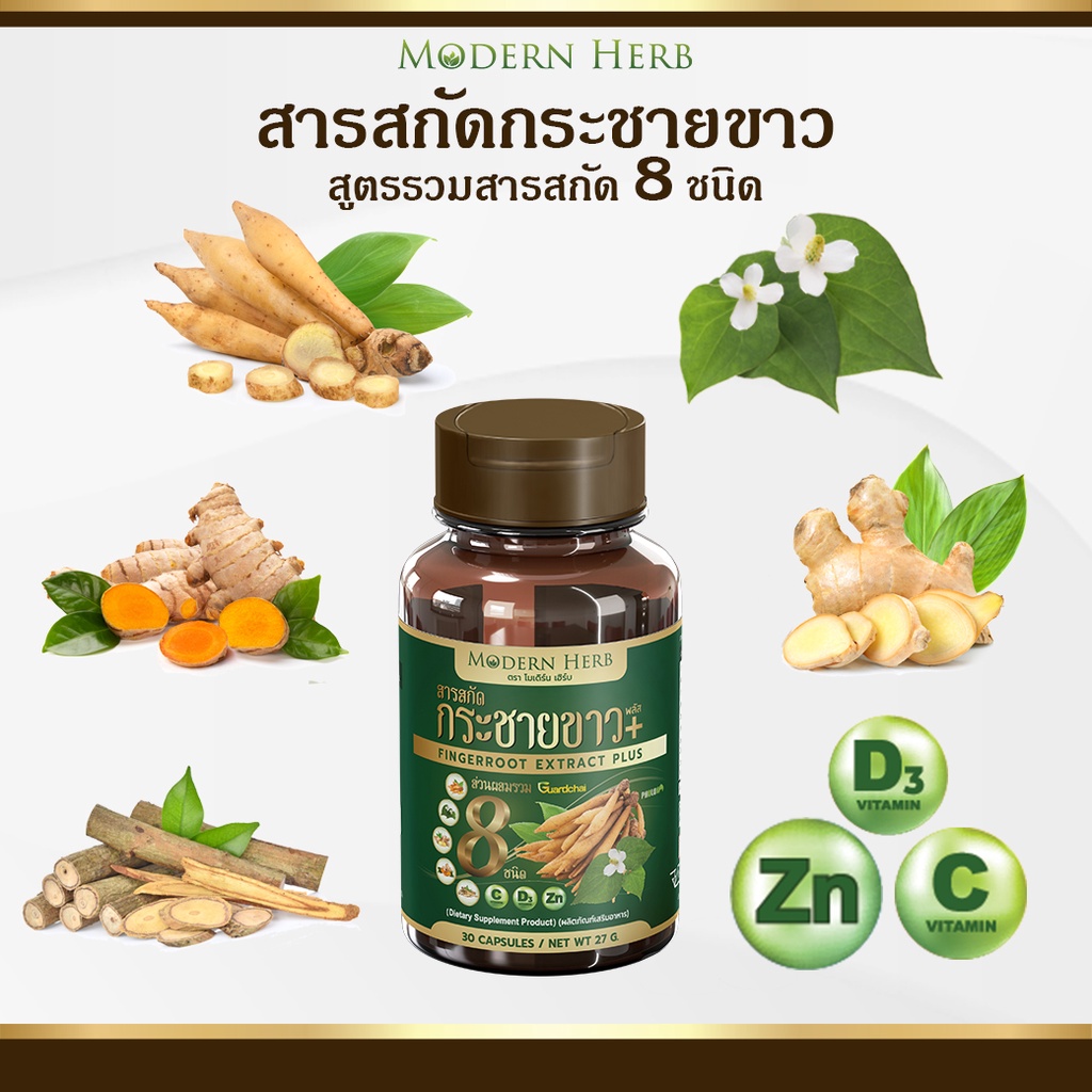 กระชายขาว พลัส 1000 มก.(ของแท้!!) ตรา Modern Herb 30 แคปซูล สูตรเข้มข้น มาตราฐาน GMP ISO