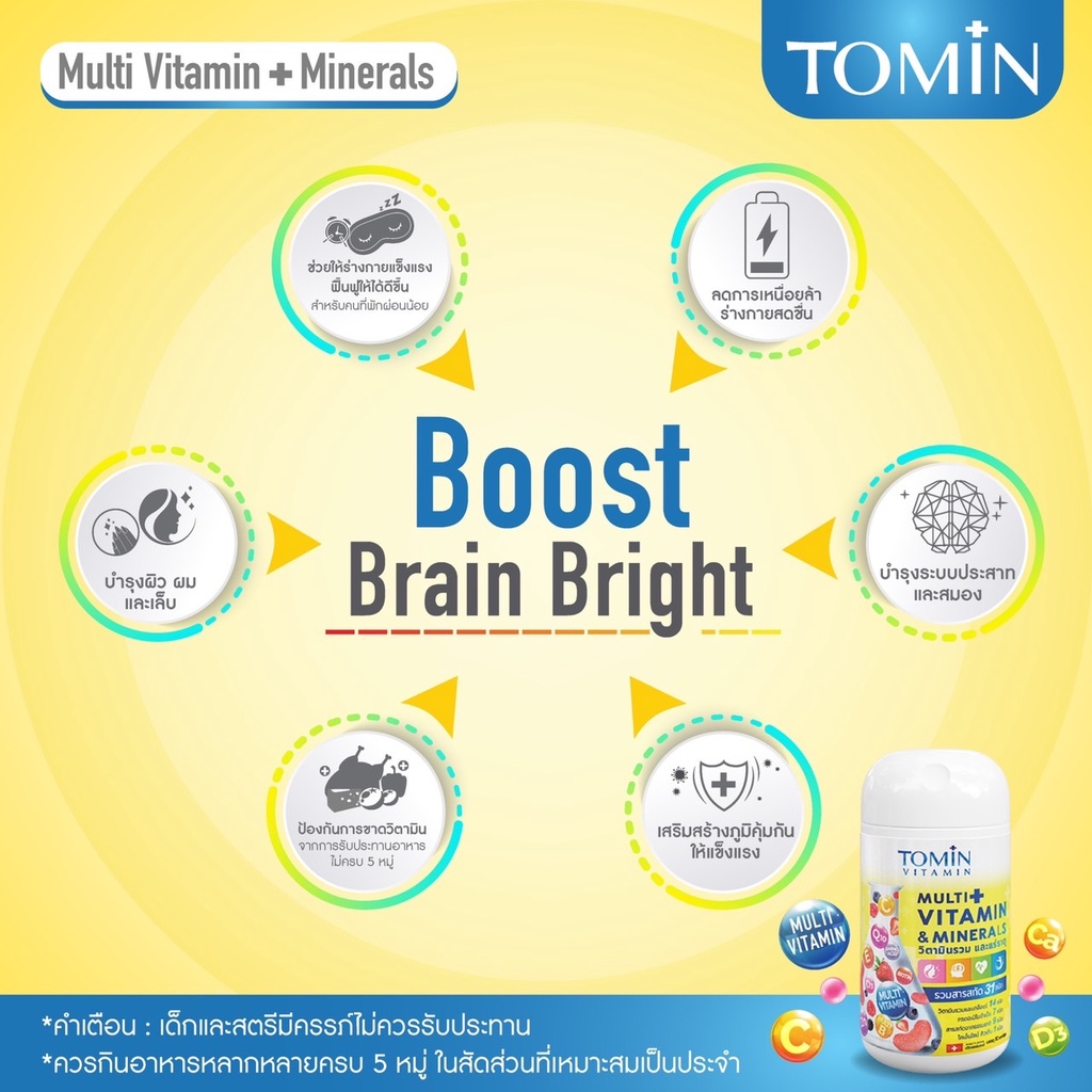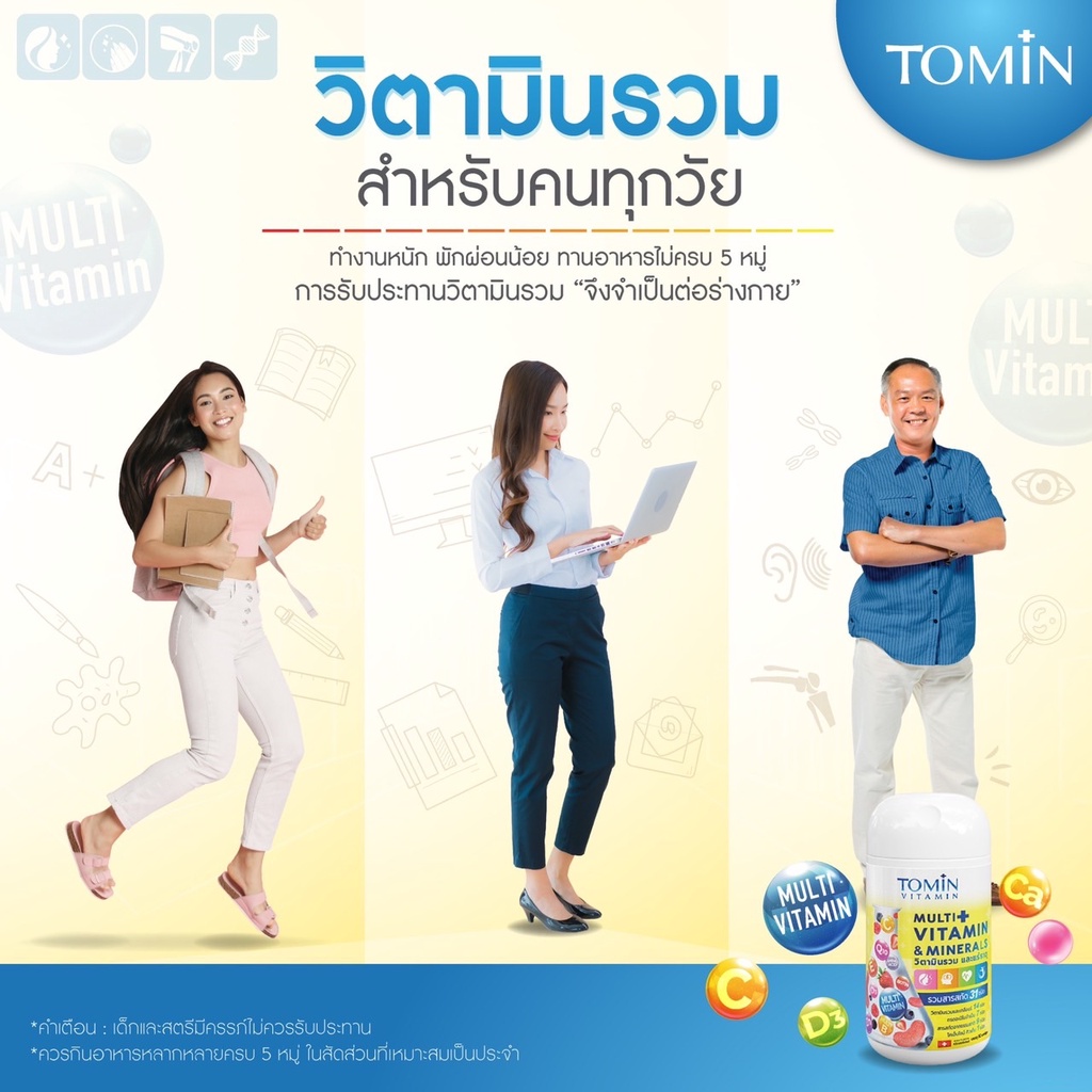 Tomin Multi Vitamins & Minerals โทมิน มัลติวิตามิน กระปุก 30 แคปซูล