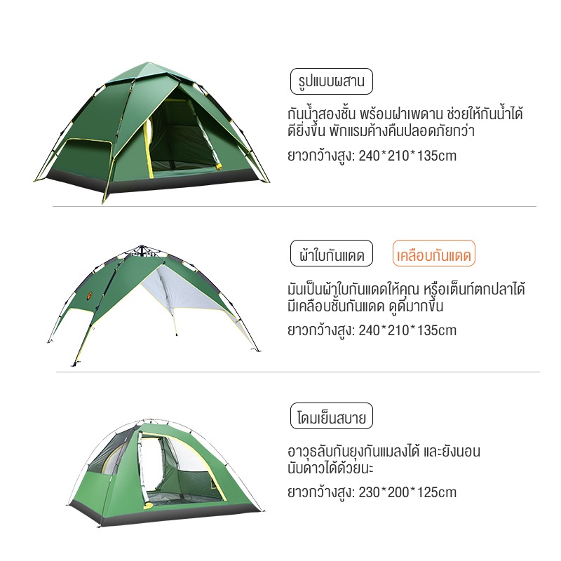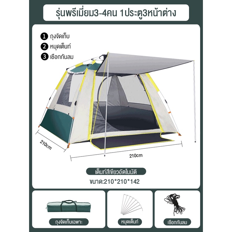 🏕ต็นท์นอกอาคารออโต้หนากันแดดกันฝนจุได้3-4คนกางอัตโนมัติเต้นท์ปิกนิกนอนคู่ เต้นท์แคมปิ้ง เต้นท์นอน2คน เต๊นท์ เต็นท์นอน
