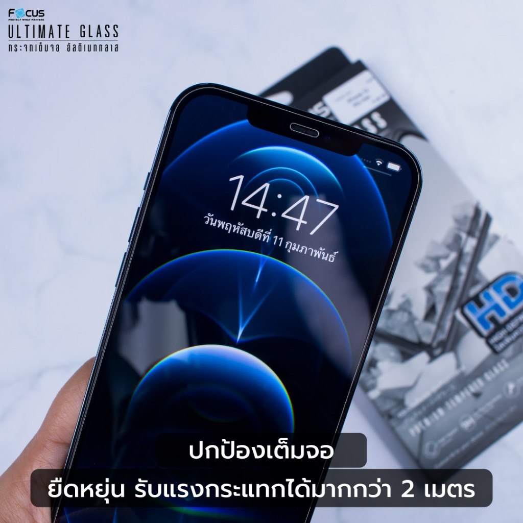 *ประกัน1ปี* Focus กระจกไม่เต็มจอ Ultimate Glass HD ไม่มีขอบสำหรับ iPhone 17 17Air 17Pro 17ProMax 16/PM/Pro/Plus 15