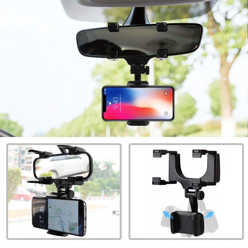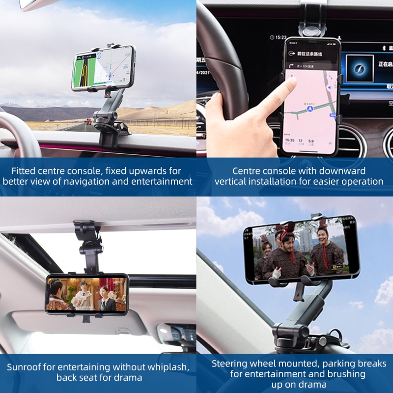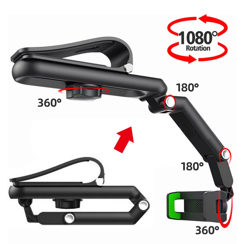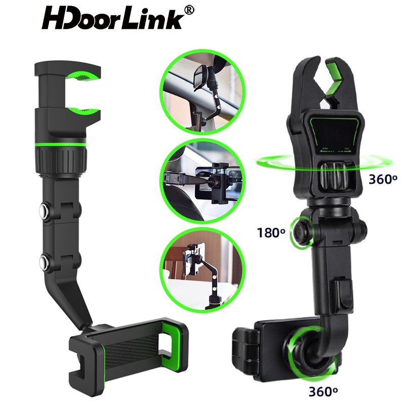 Hdoorlink อัพเกรด 1080° ที่บังแดด ที่วางโทรศัพท์ในรถยนต์ 360° ที่วางโทรศัพท์มือถือ GPS ติดกระจกมองหลังรถยนต์ ปรับได้ อเนกประสงค์ สําหรับห้องครัว