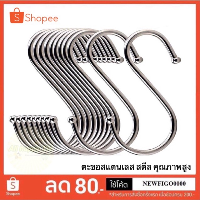 ใส่โค๊ดhappy09ลด20% ตะขอตัวs ตะขอแขวน ตะขอคุณภาพดี ตะขอรูปตัว S ตะขอแขวนในครัว ตะขอสแตนเลส แข็งแรง ไม่เป็นสนิม
