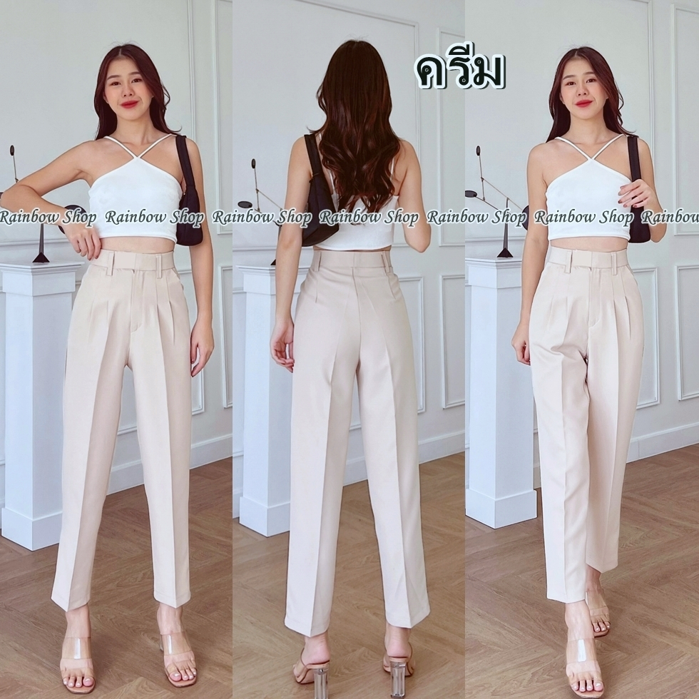 กางเกงทรงบอย เอวสูง ผ้า A80 👗งานป้าย Rainbow Shop💕 กางเกงขากระบอกเล็กทรงบอย 9 ส่วน(BB)