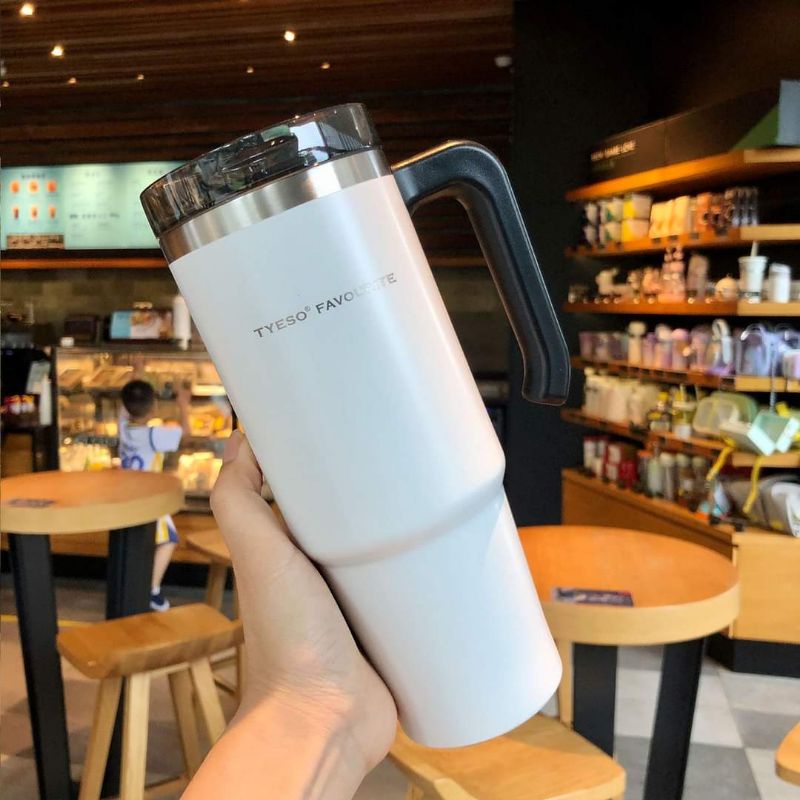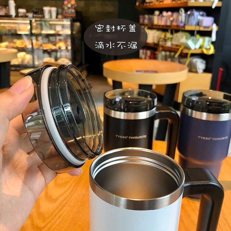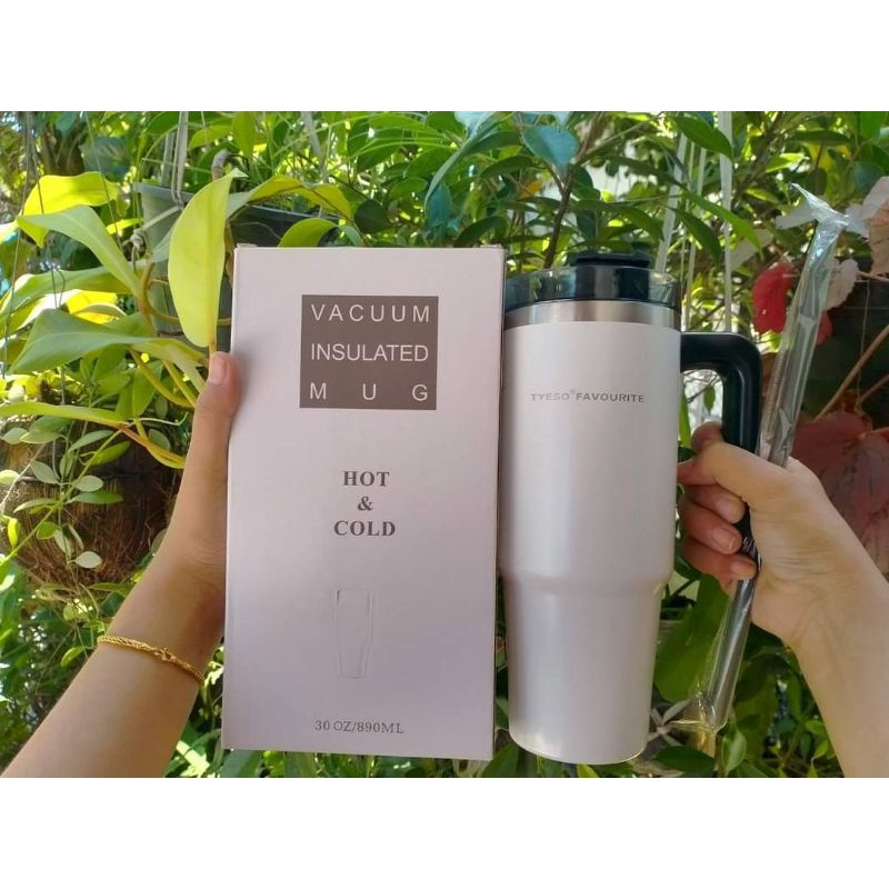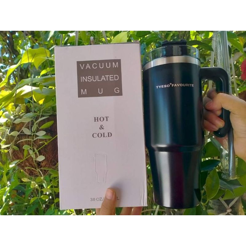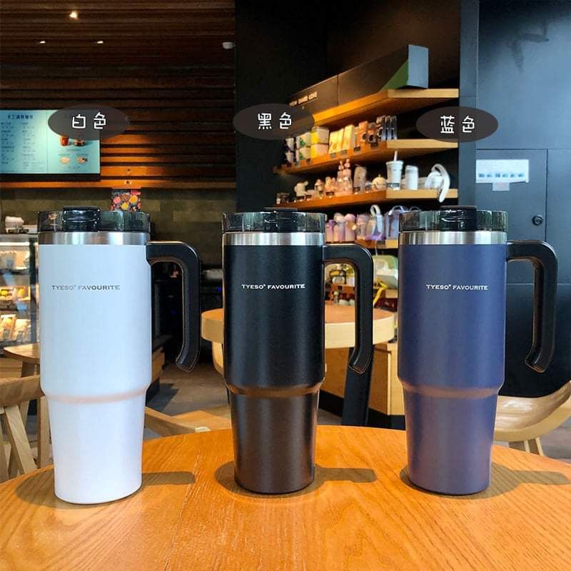 [ลดเพิ่ม 25.- เก็บโค้ดหน้าร้าน]🥤แก้ว TYESO แก้วสแตนเลส 304 (ขนาด30 oz.) เก็บอุณหภูมิร้อน-เย็น มีหูจับ พร้อมหลอด