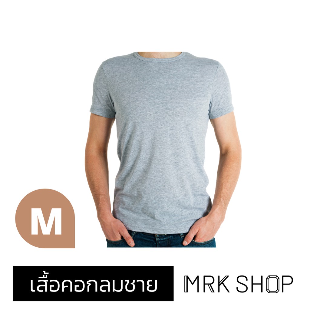 [MRK Soft] เสื้อยืด คอกลม (ผ้าท้อปดราย) / สีเทาล้วน