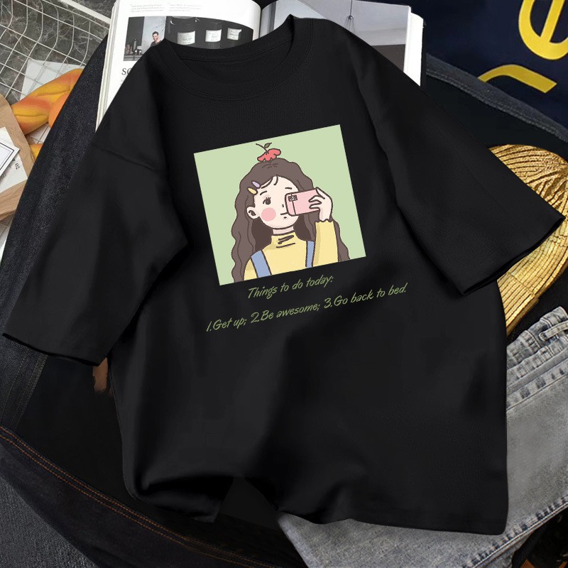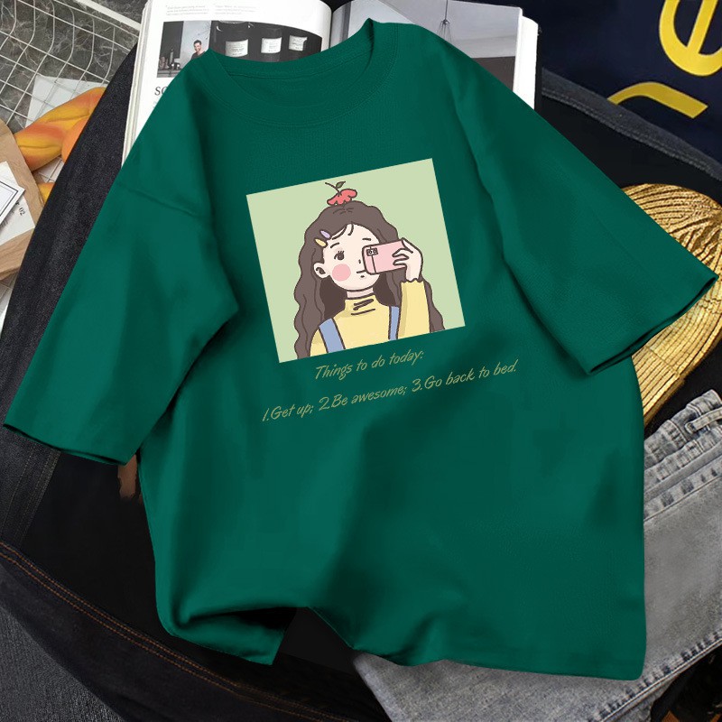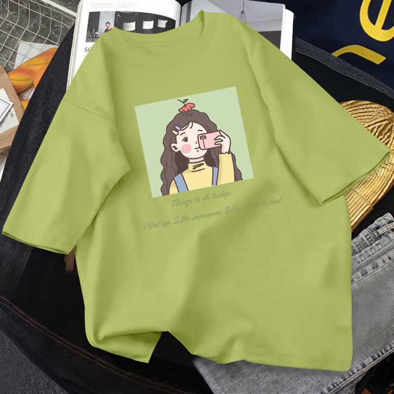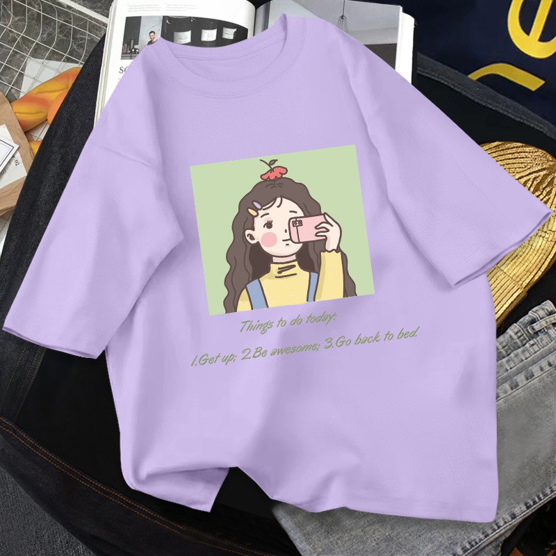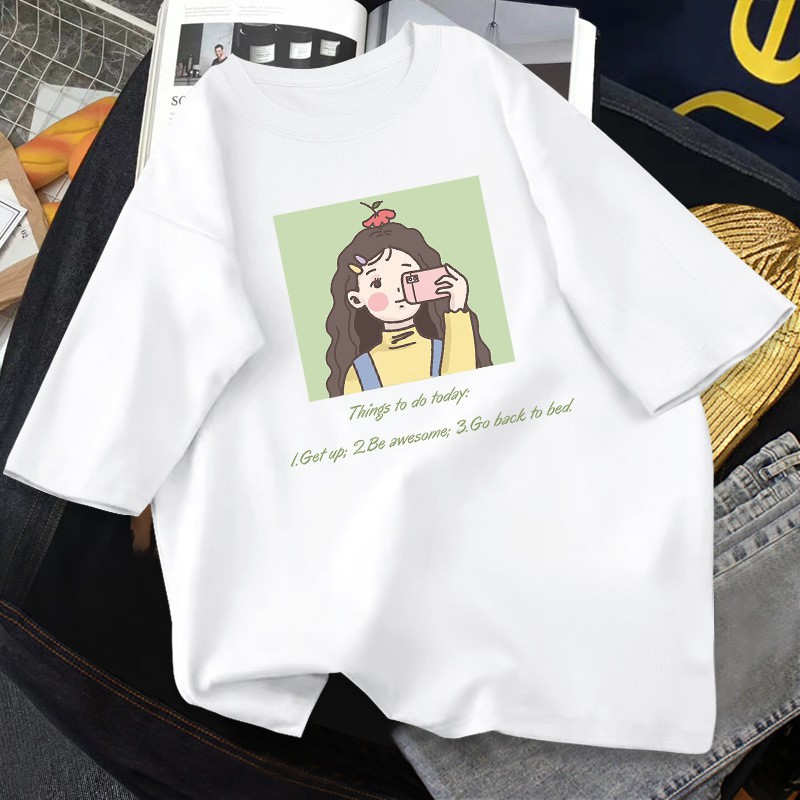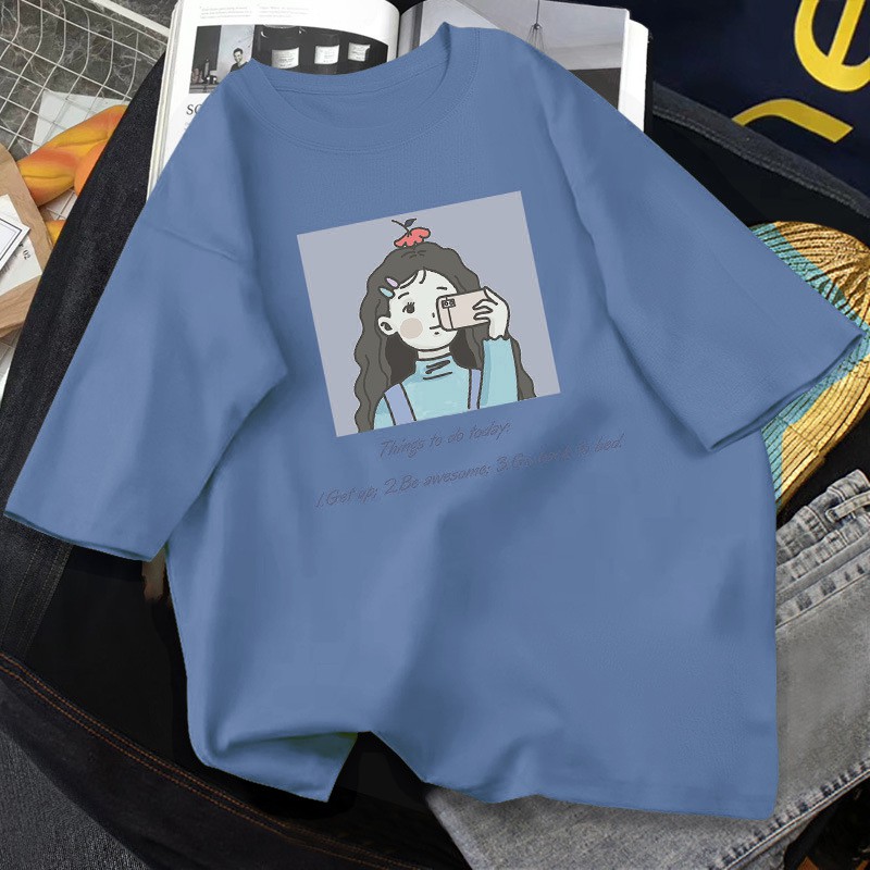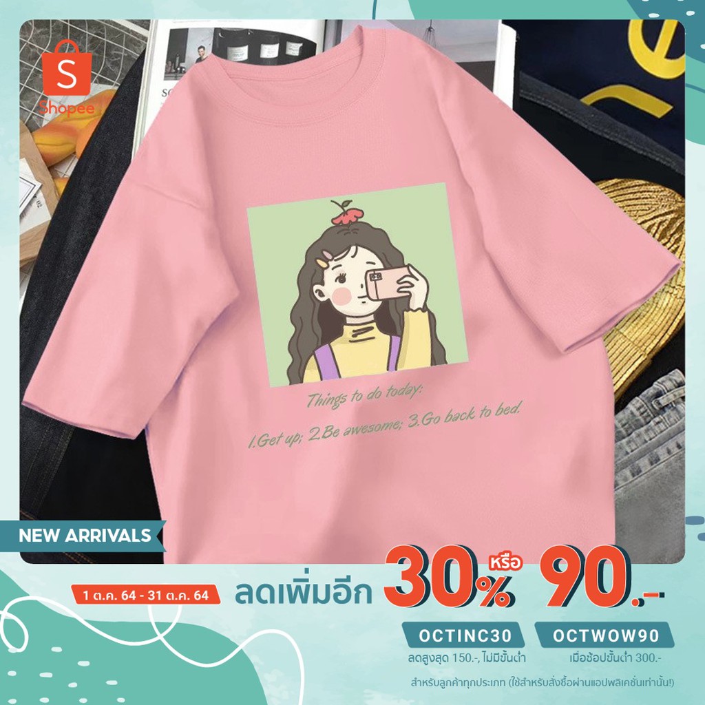 GAKKI เสื้อยืดหญิงแขนสั้นแบบหลวม ใส่สบาย ผู้หญิงเสื้อยืด เสื้อยืดแขนสั้น Oversize Cotton 4104#