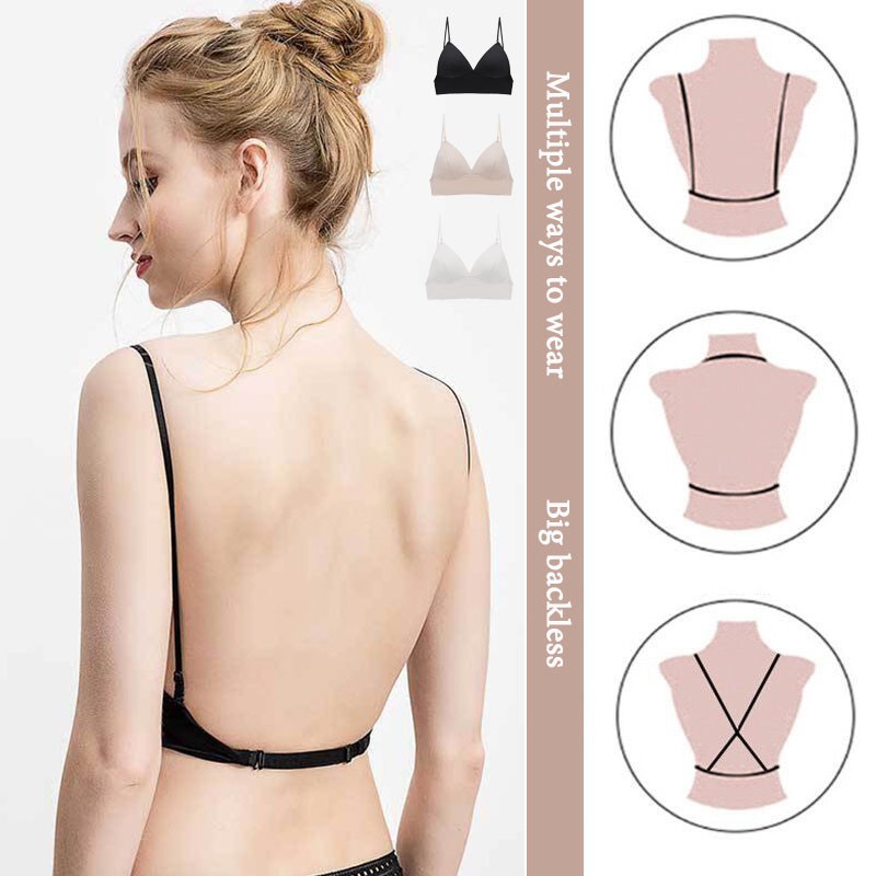 เสื้อชั้นในไร้โครง เนื้อผ้าไมโครไฟเบอร์คุณภาพสูง แบบเปิดหลัง บุฟองน้ำบาง ถอดออกได้ สไตล์เซ็กซี่ สวมใส่ได้หลายวิธี สีดำ สีขาว สีเนื้อ ขนาด S M L