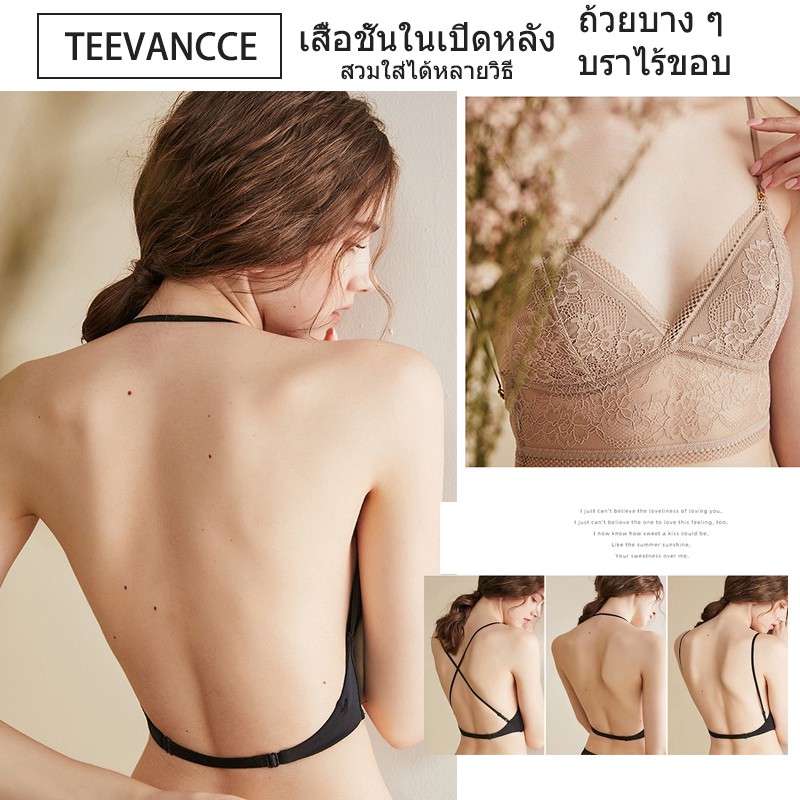 เสื้อชั้นในไร้โครง แบบเปิดหลัง คัพบาง แต่งลายลูกไม้ สไตล์เซ็กซี่ สวมใส่ได้หลายวิธี ขนาด S M L มี 4 สี