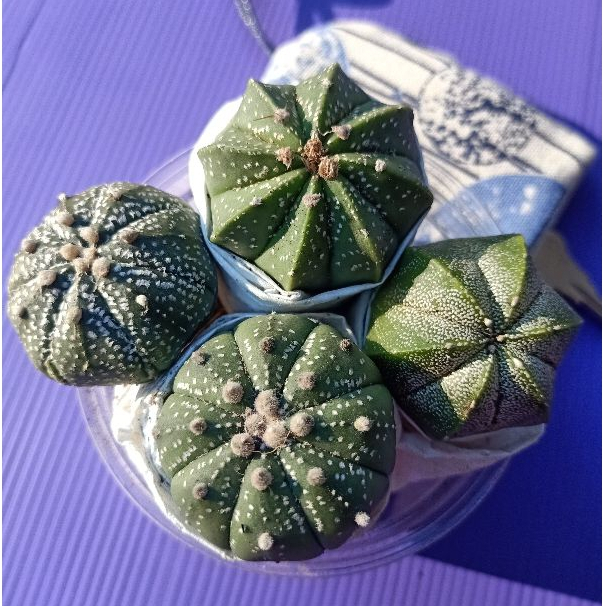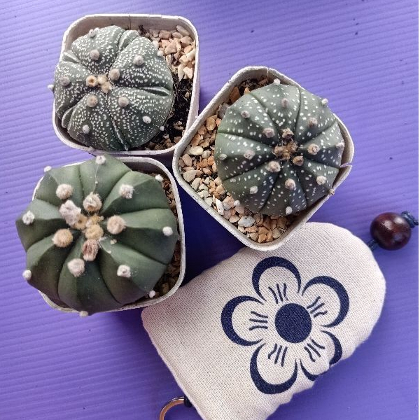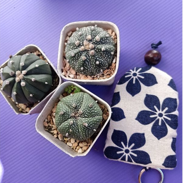 4 Astrophytum แอสโตรไฟตัมคละสายพันธ์ุแถมกระเป๋าเก็บกุญแจโฮมเมดผ้าฝ้ายญี่ปุ่น