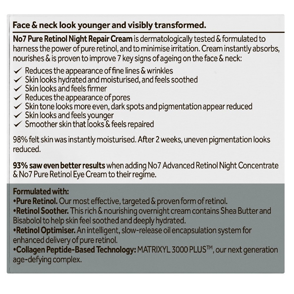 No7 Pure Retinol Night Repair Cream 50 ML. นัมเบอร์เซเว่น เพียว เรตินอล ไนท์ รีแพร์ ครีม 50 มล.
